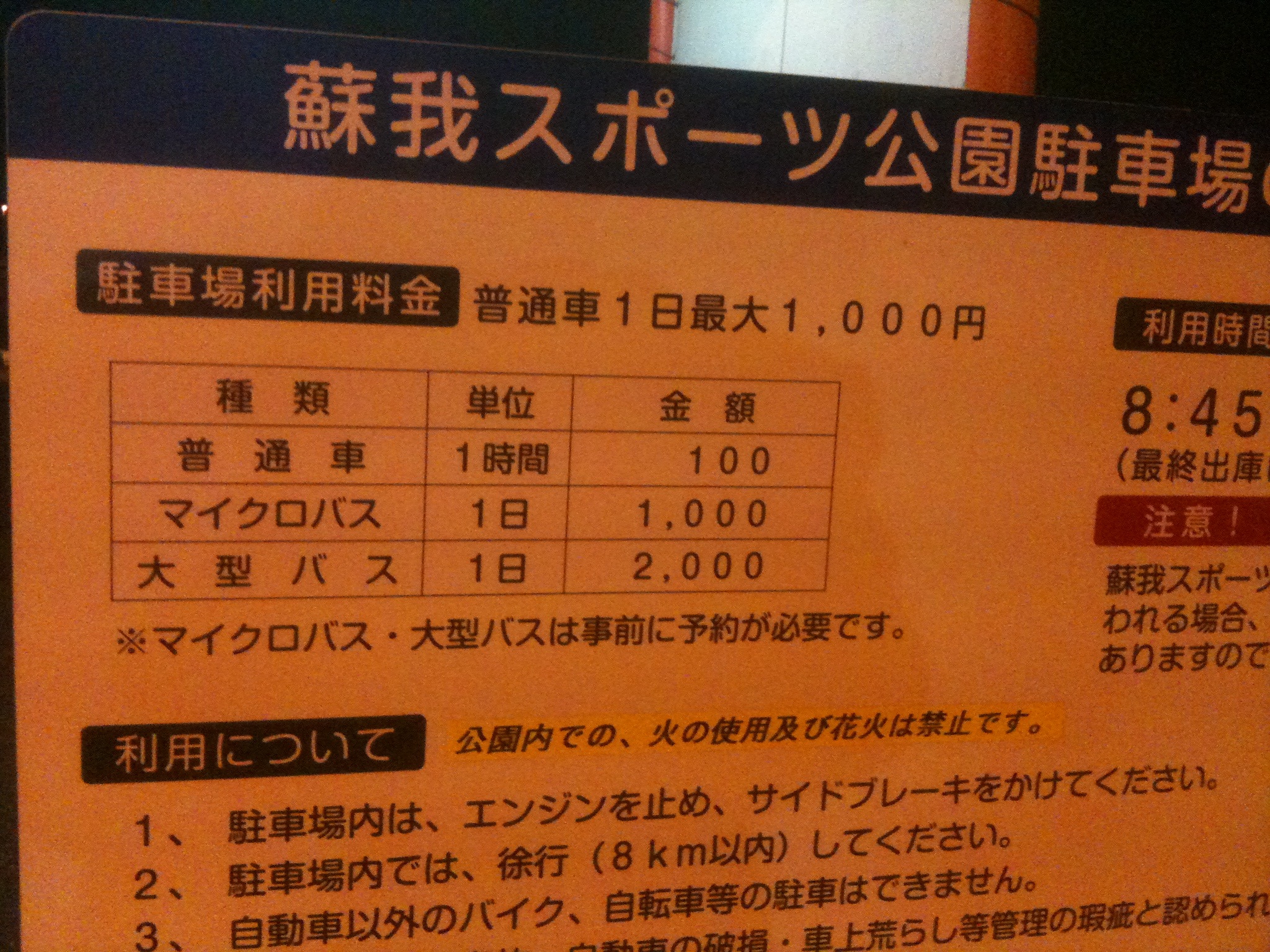 ところでフクアリの近くの駐車場は1時間100円でした。ところがサッカーに来ました、というと一律1000円になってしまいます。しかも駐車場はスタジアムから一番離れたところ、駐車場が閉まる時間も他の場所より早くなります。