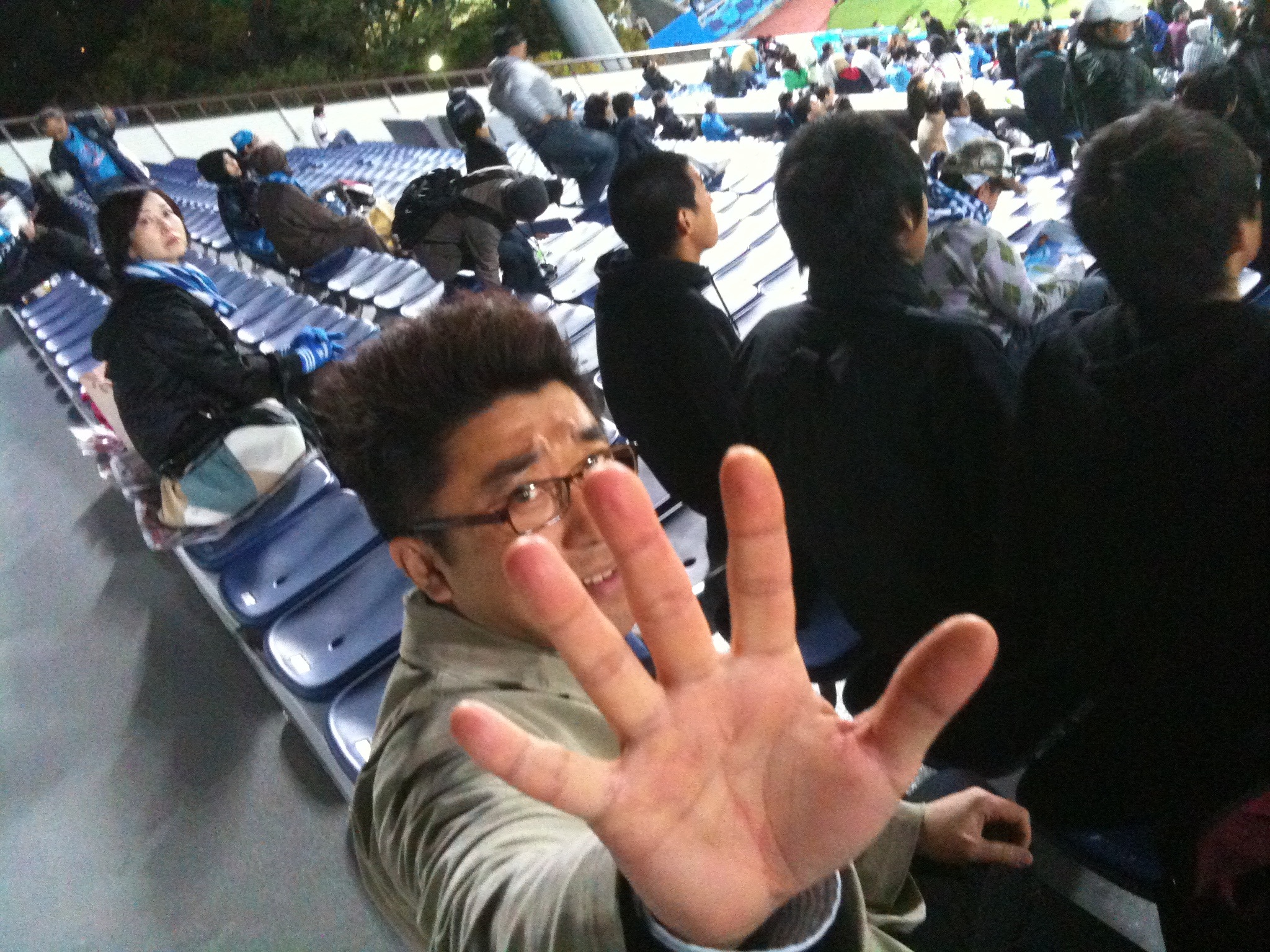 試合前にカズ選手がスポーツスーツ姿で横浜FCのロッカールームに来ていました。いつも試合の時はビシっとしたスーツで現れ、ロッカールームでは高級そうなバスローブを着ているのに、この日はスポーツスーツ。出られなくてもチームとの一体感を出そうと考えたのでしょうか。聞く間もなく、すっといなくなってしまいました。残念。