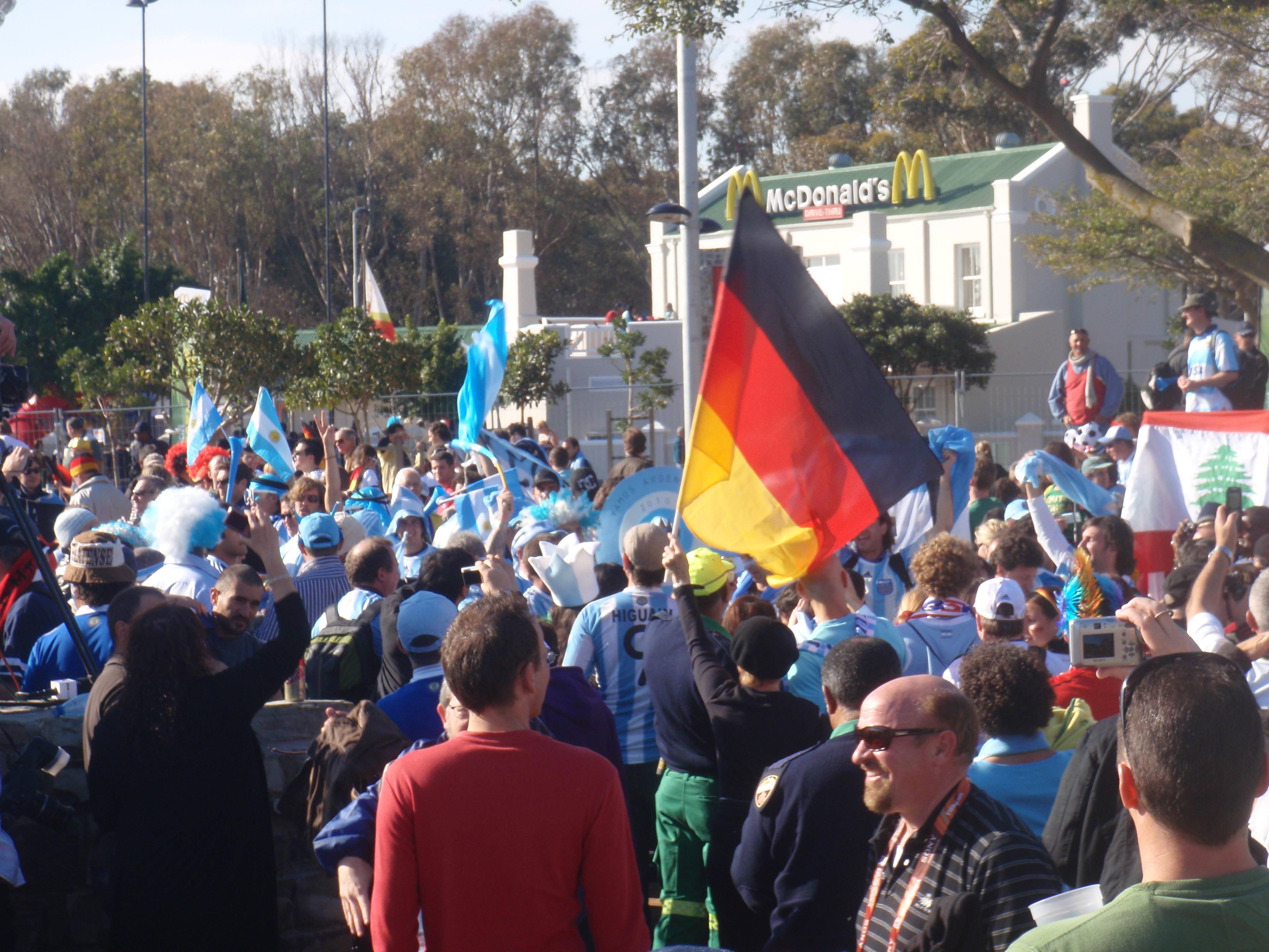 2010年7月4日 / 最終更新日時 : 2010年7月4日 morimasafumi 未分類 アルゼンチンvsドイツ試合直前 ケープタウンは危なくないので、試合前に街をうろついてみました。応援合戦。1人ドイツ人が突入しましたが、ケンカは起きませんでした。 テレビでもちょっとだけ紹介された山の様子。 道路にドイツの色が。誰がやったのか、根性を見ました。 Follow me! FacebookXBlueskyHatena