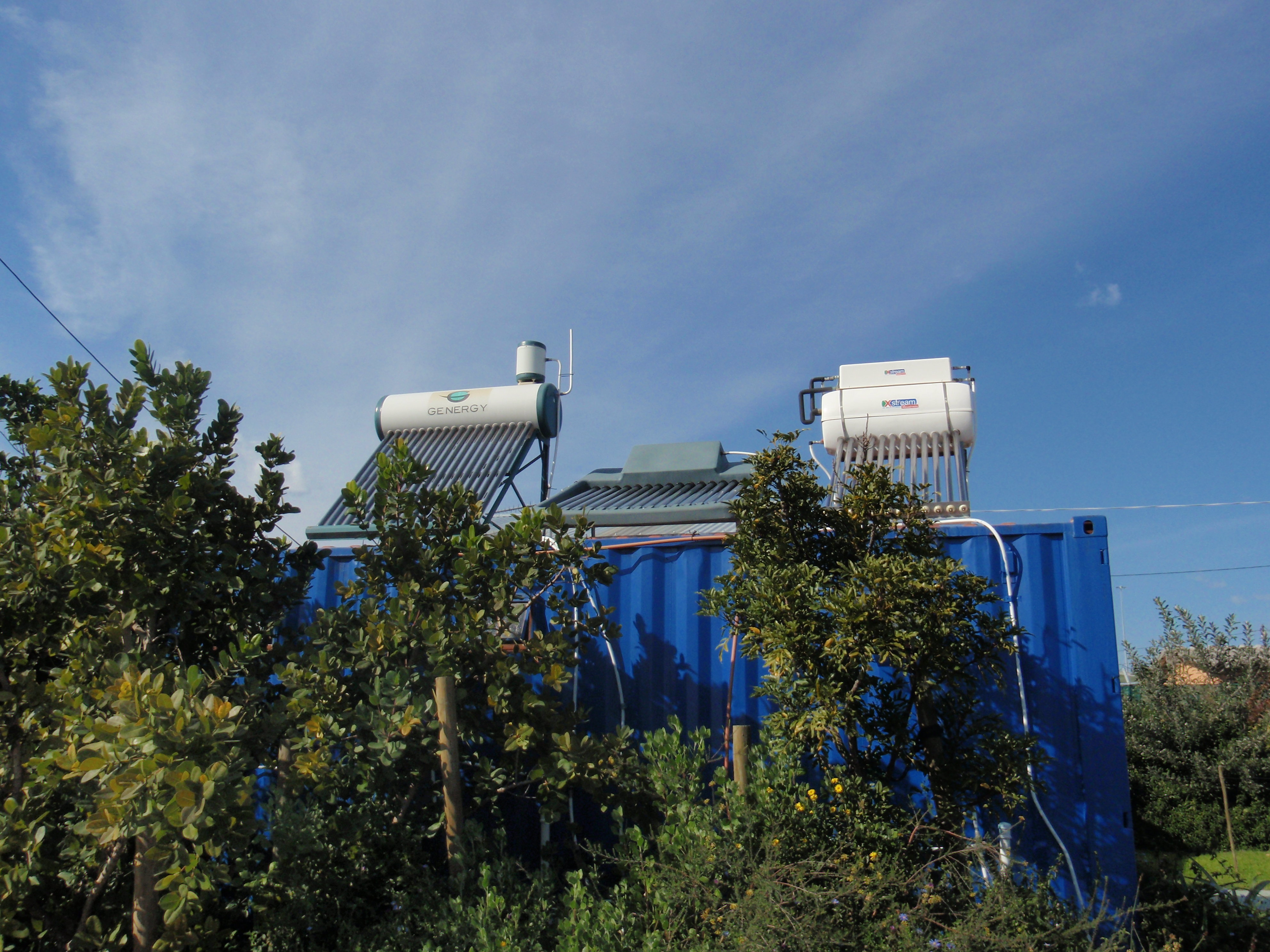 コンテナというコンテナの上に温水器が乗っています。説明してくれた人も「これまで親戚が来ると恥ずかしかったけれど、もう今では誇らしい」ということでした。