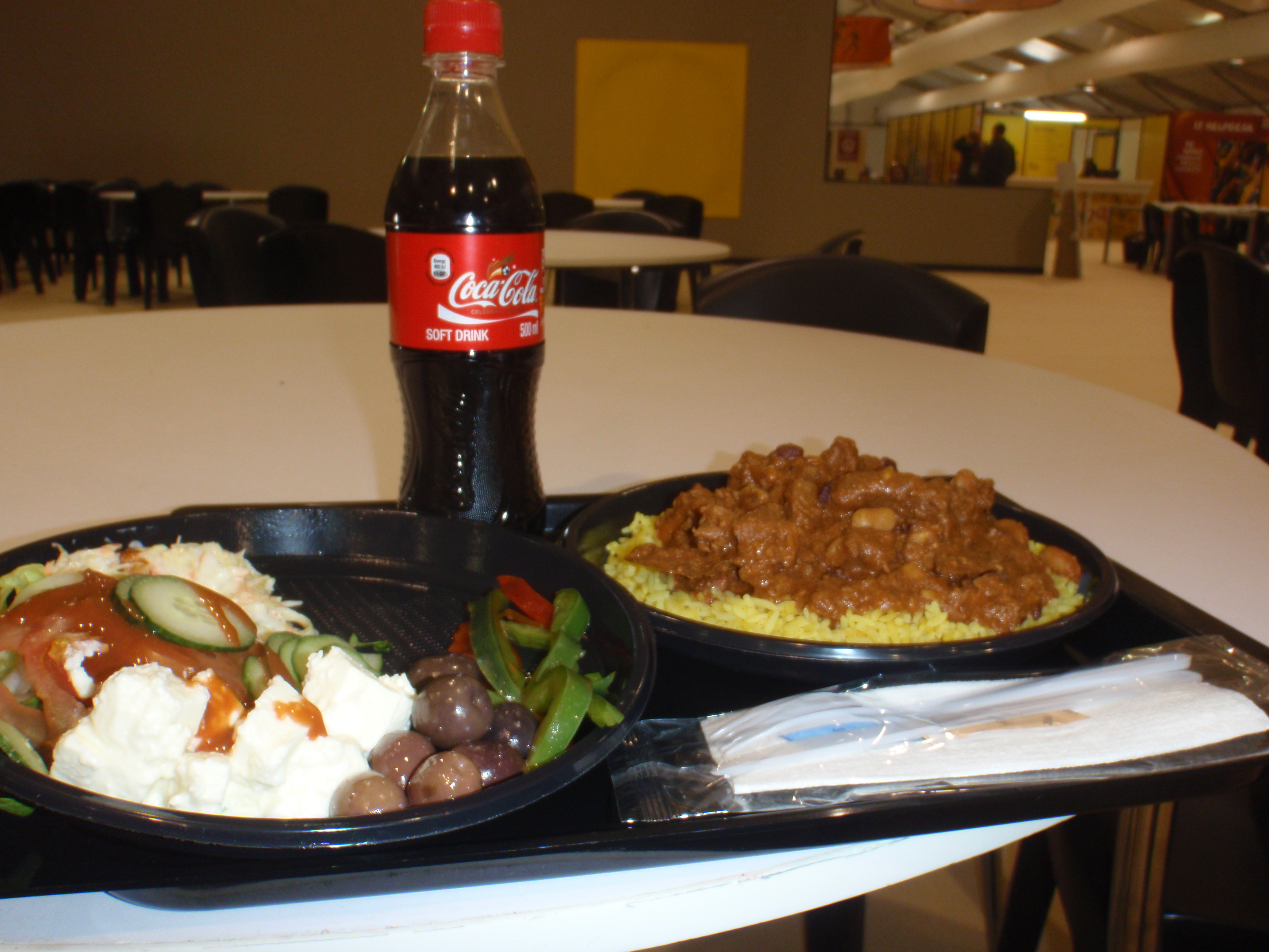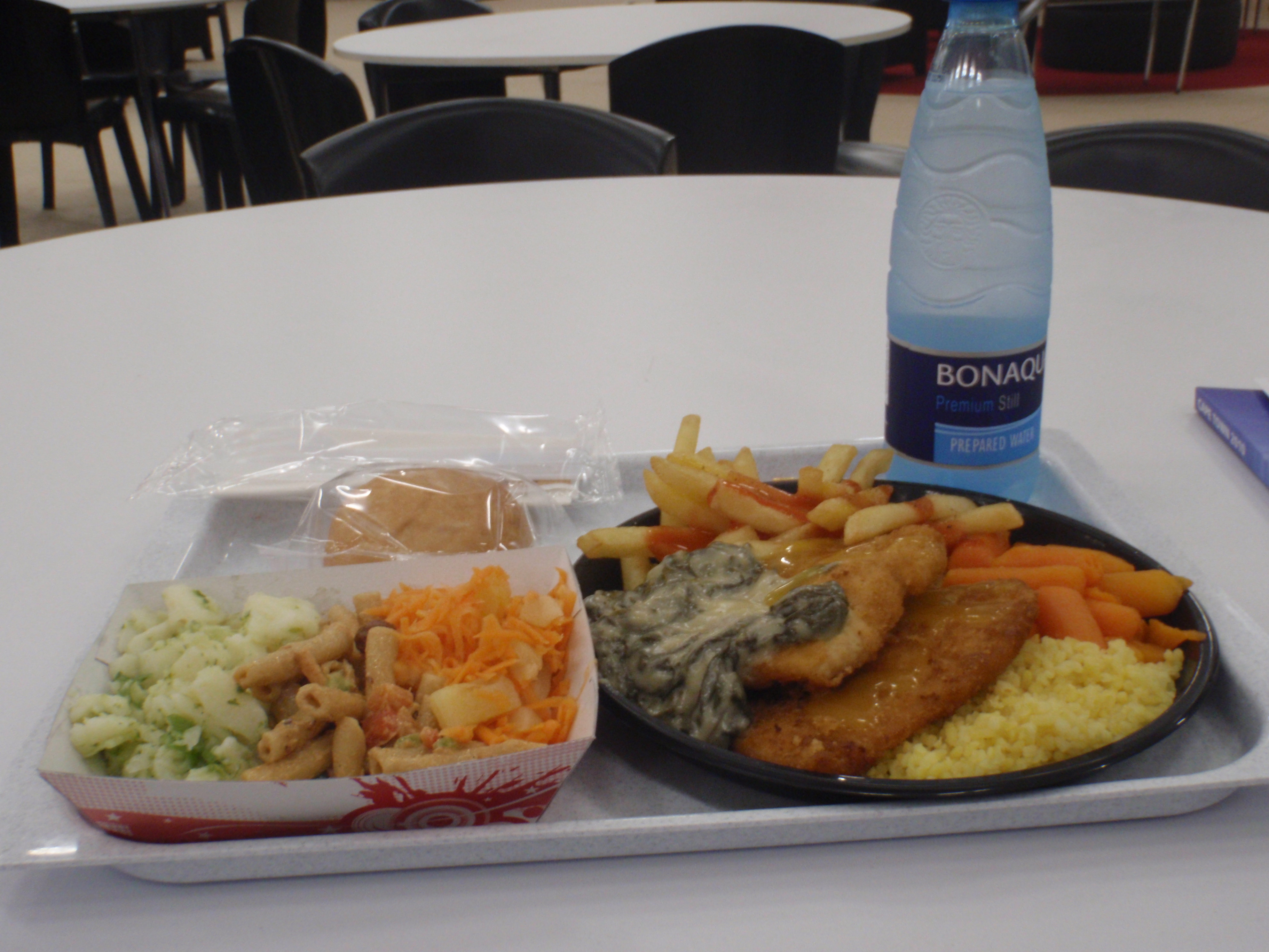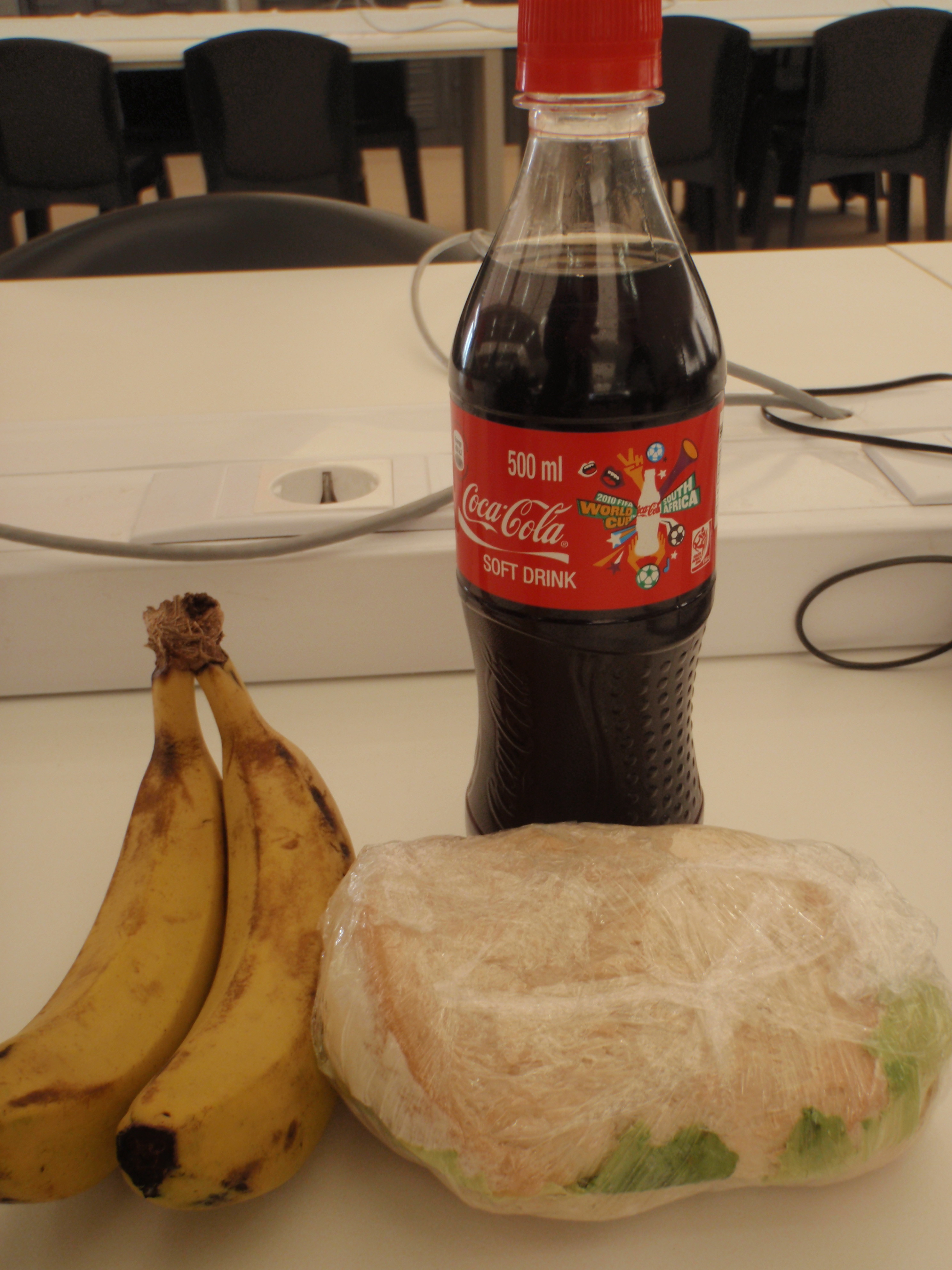 南アフリカではこんなものを食べていました。びっくりするくらいバリエーションがありません。というのも、お金を節約するためにほぼ一日1食か2食。しかもメディアセンターにいる時間が長いため、変化をつけられないのです。