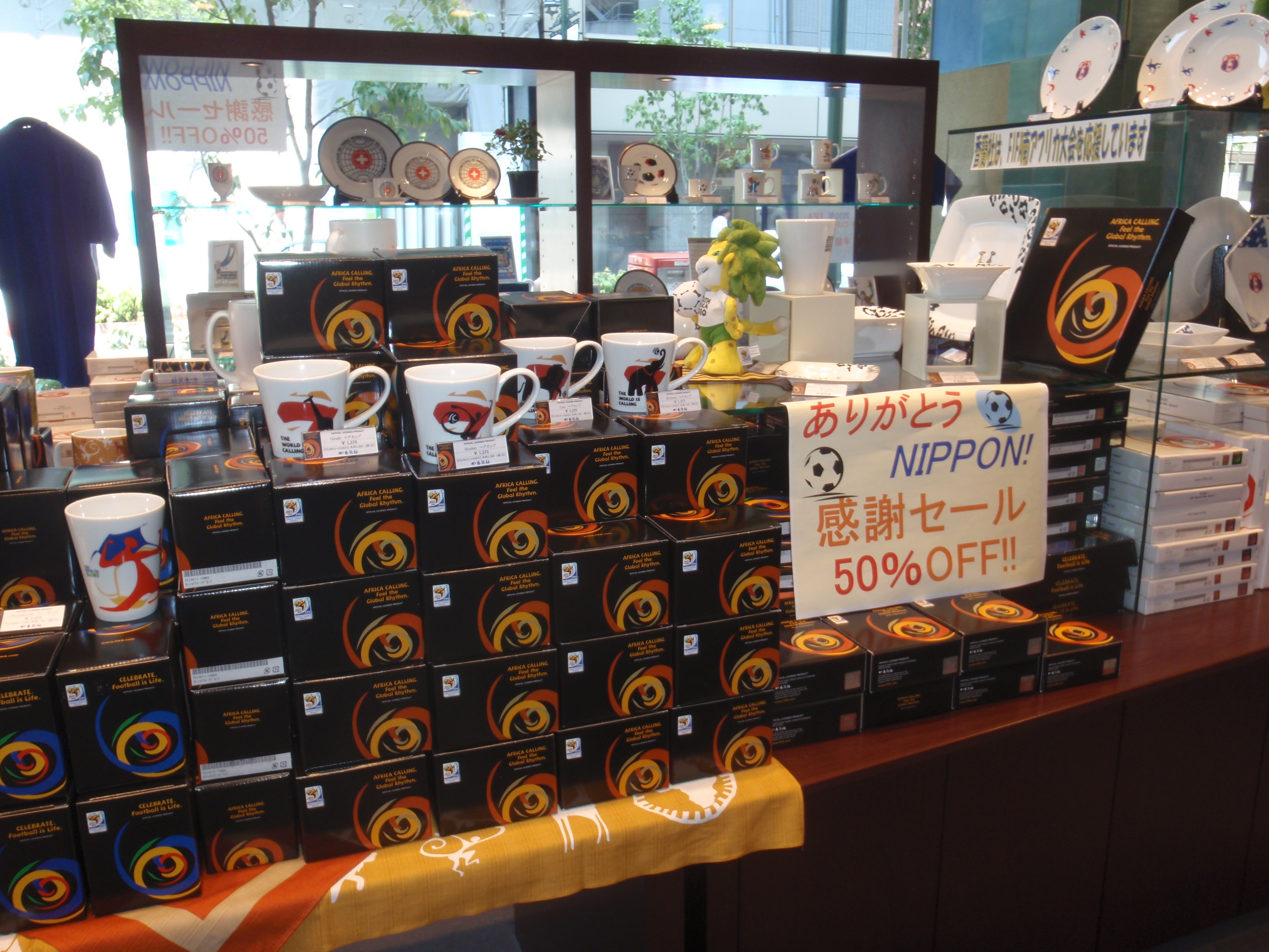 なんと今年のワールドカップ関連商品が50パーセントオフになっているのです。マグカップが630円とか、他の香蘭社のマグカップが1500円から4000円程度するのと比べても破格の値段。ありえない。