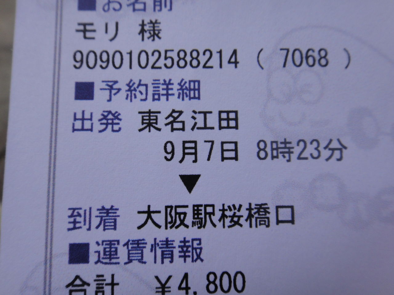 東名江田で乗車し、大阪駅に到着するのが16時29分の予定。この分単位の時刻表って日本を感じさせます。少なくともヨハネスブルグでは考えられません。