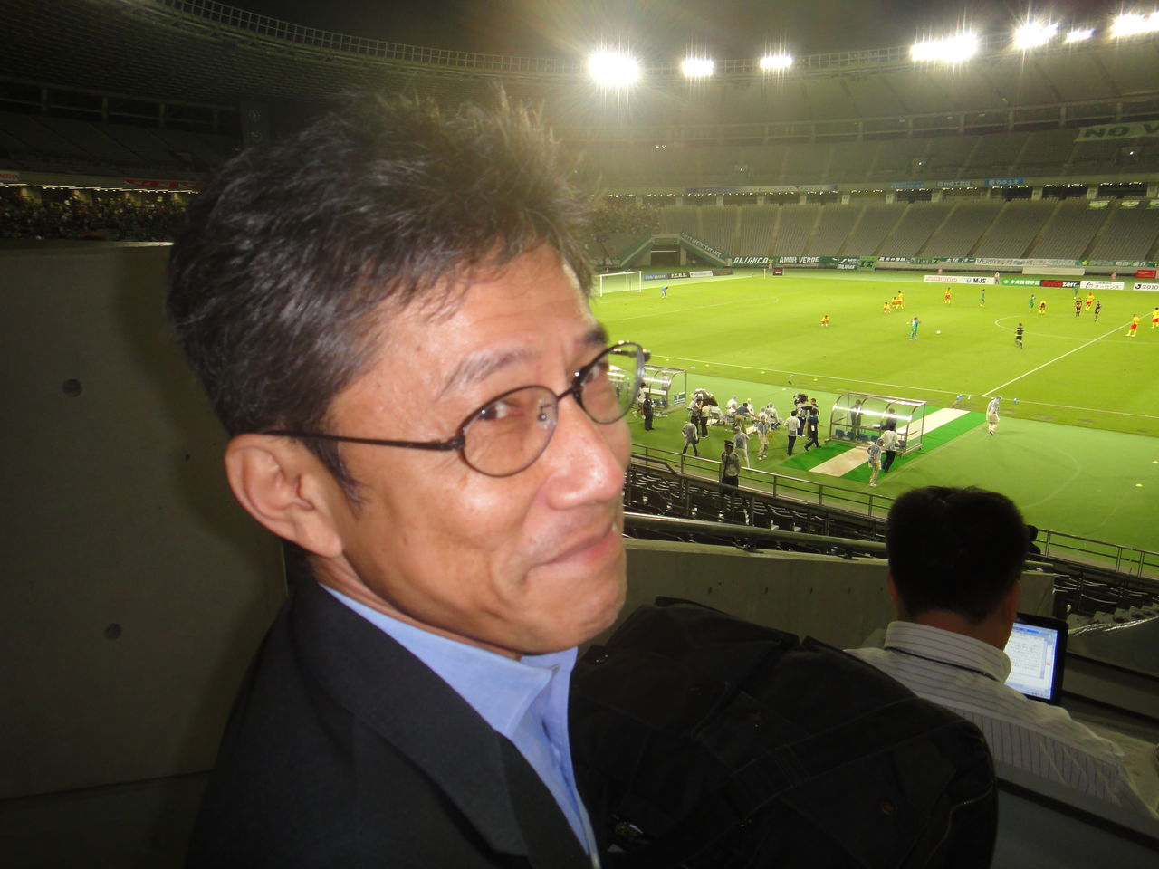 元浦和の広報の佐藤さん。現在は2020年仕様のスタジアムをどうするのか、何があって何がなくて、何が必要なのか調べたりアドバイスしているそうです。厳しい目でスタジアムと試合を見つめていた「ミスター」でしたが、やはり試合が始まるとサッカー好きの地が思い切り騒いでいるのがわかってしまいました(笑)。