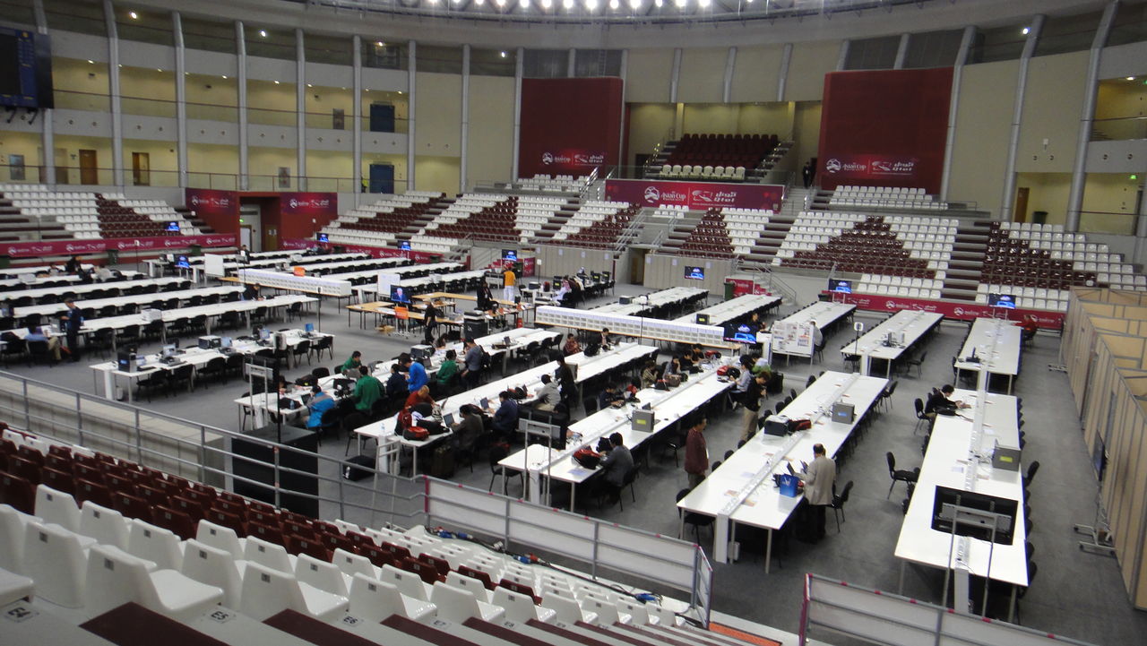 ADカードを受け取ったら、やっとメインのメディアセンターに入れます。どうやら体育館を使ったセンターのようで、プレハブだった南アフリカよりもしっかりしています。
