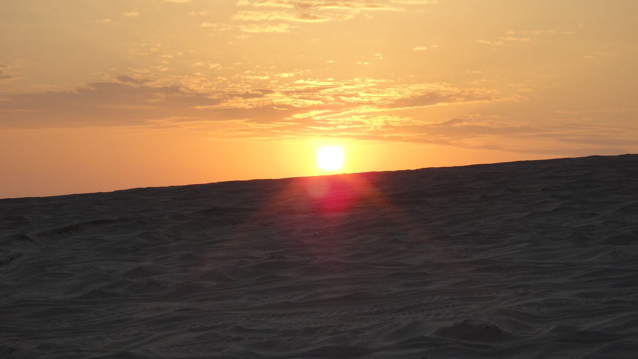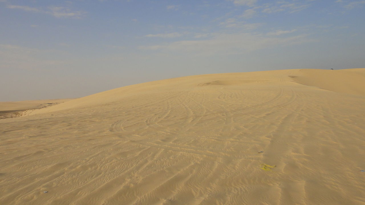 見渡す限り砂、砂、砂、そして車の走った跡。どうやら砂漠ツアーは人気のコースのようです。