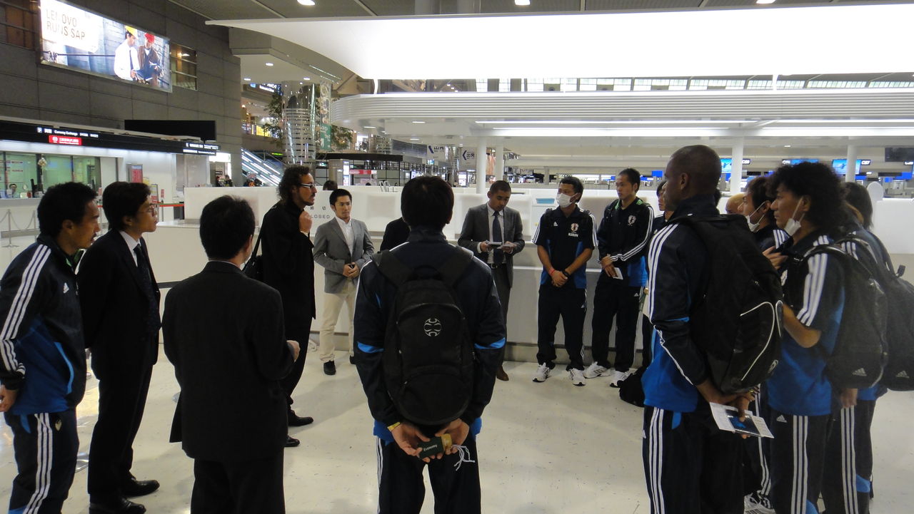 ビーチサッカー日本代表のみなさん。ワールドカップ予選に向けて出発します。