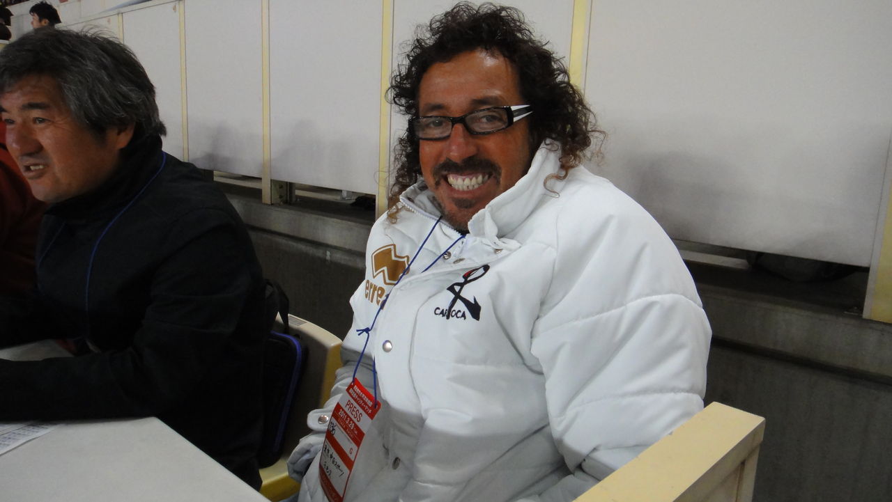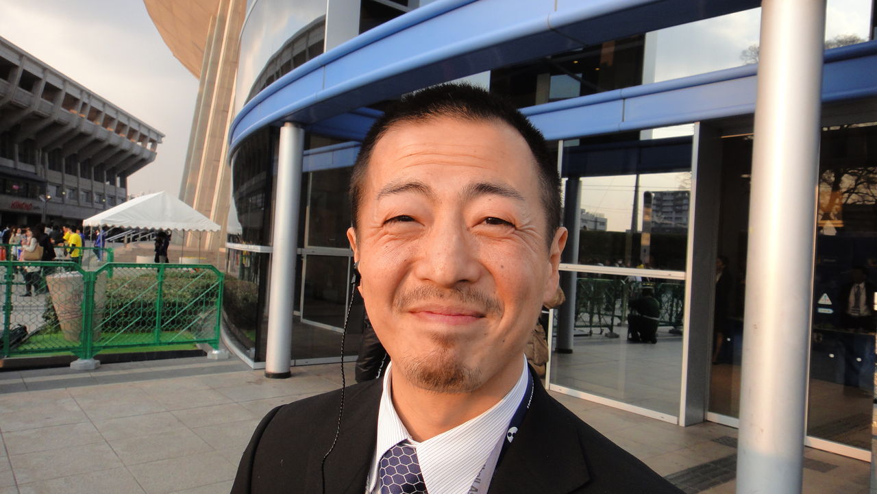 日本サッカー協会の高埜さん。急に開催が決まった試合でしたから、裏方は本当に大変だったと思います。「もう4日ぐらい寝てません」と疲労困ぱいの中で作ってくれた笑顔。