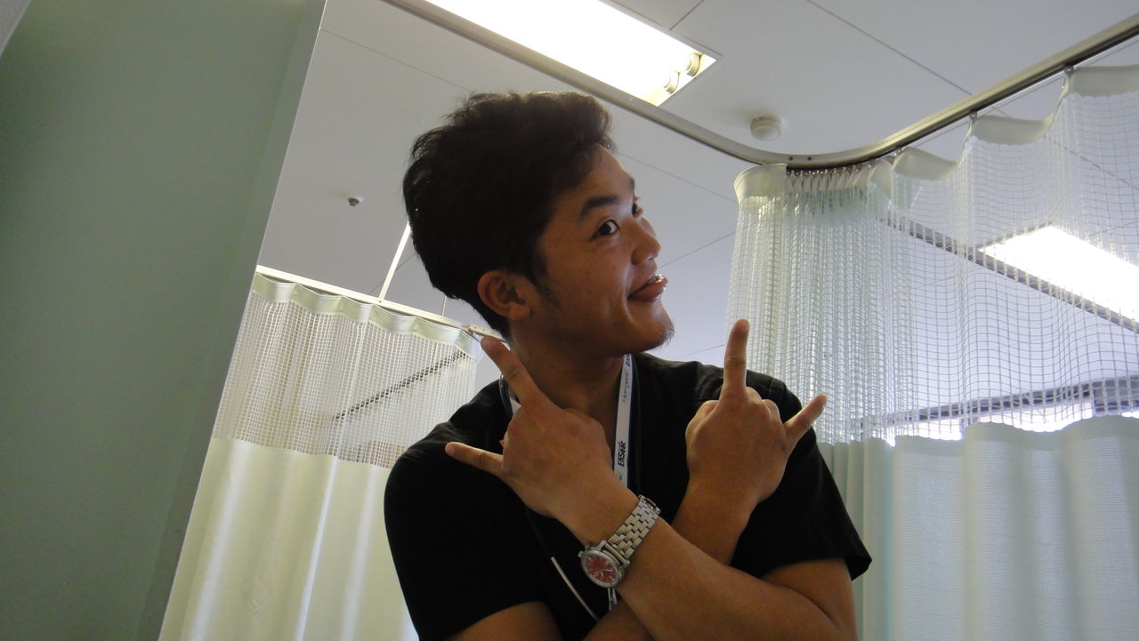 若林ドクター。最初の診断のときから、退院するまでずっと面倒を見ていただきました。つまり毎日ほとんど出ずっぱり。若林ドクターはまだ研修医ということで、長時間労働が大変そう。それでも野球で鍛えた身体を活かし、僕の細かい質問や要望にすべて回答をいただきました。信頼感抜群の先生です。写真はアレですが(笑)。