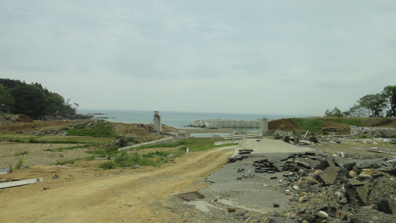5月に来たときまでは瓦礫がいたるところに山積みになっていたそうです。震災の後最初に来たときは道路もふさがれている状態だったということでした。