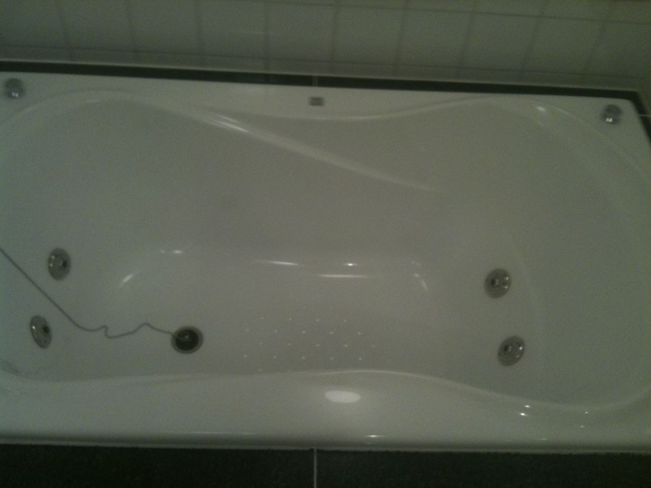 すごい、ジャグジー付きです。ボタンを押すとライトが暗くなって浴槽内のライトが七色に点灯します。