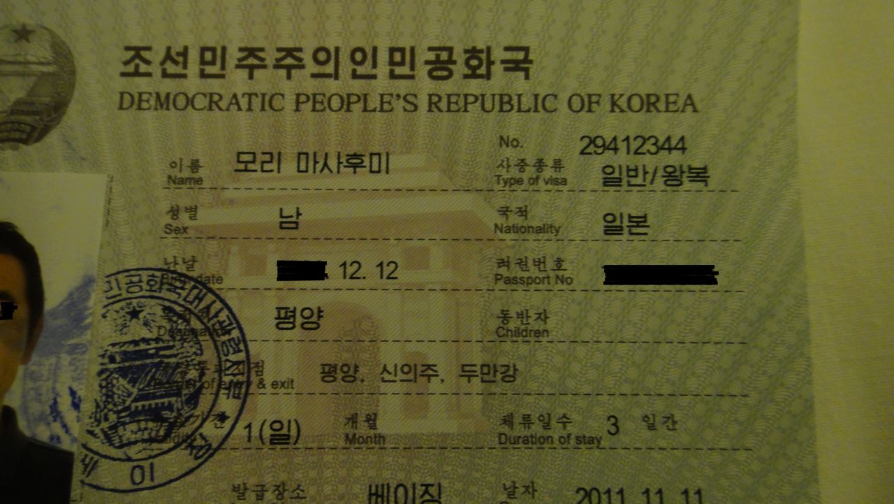 2011年11月11日 / 最終更新日時 : 2011年11月11日 morimasafumi 未分類 これでとりあえず一安心。 朝鮮民主主義人民共和国のビザが無事に取得できました。 取得の様子や、なぜこのような形式なのかなど詳しくはライブドアに書こうと思っています。よろしくお願いします。 Follow me! FacebookXBlueskyHatena