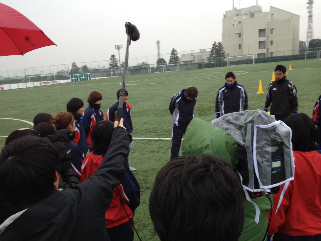 サッカーも仕事も、と監督が言うように、選手たちは学生を除いてみんな研修中。もうすぐ店舗に出ると言うことです。彼女たちはノジマの正社員になりました。ということは、サッカー選手を引退しても職場がちゃんと保証されているということです。これはノジマが生半可な決意で取り組んでいるのではない現れだと思います。それに、この選手たちを選んだ監督の責任も重くなります。その質問をしたら、「この子たちはチームの基盤。1年や2年で放りだして別の選手を入れるなんて考えていない」と菅野監督はおっしゃいました。2月1日の記者発表の14人にもう一人加わってキックオフした総勢15人が、このチームの一番星というところなのでしょう。