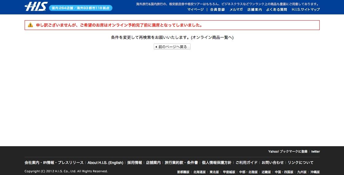 さてさて、取材計画が立ったら飛行機は早めに押さえるに限ります。最近は日本代表などのツアーをH.I.S.がやっていることもあり、今回は利用してみようとアクセスしてみました。
