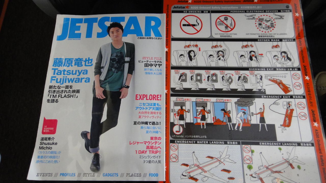 機内誌もあるし、安全のしおりも(当然ですが)あります。キャラクターが半目なのがちょっと怖い。