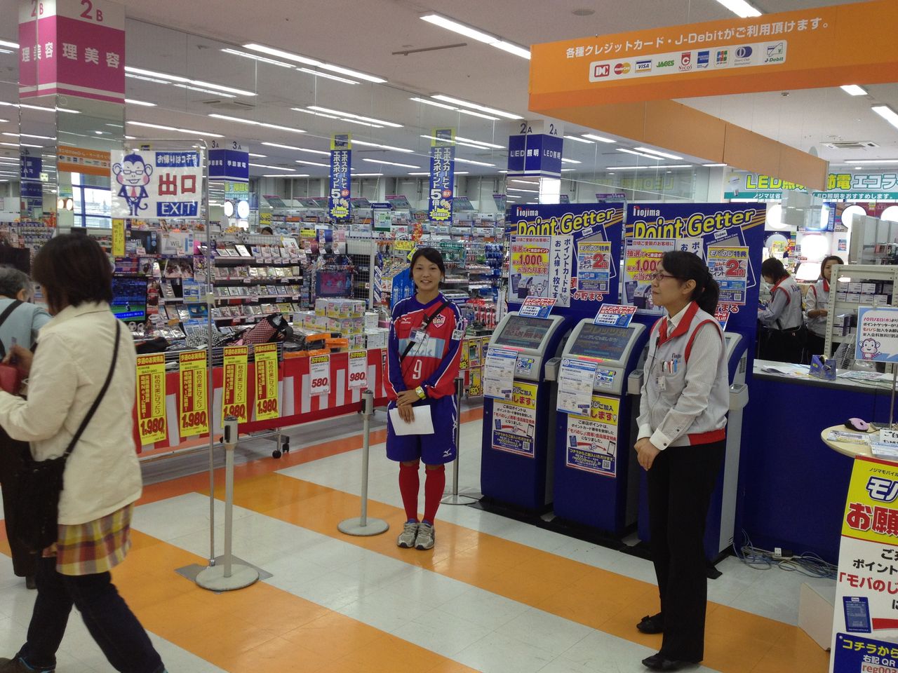 斜めにつけるLED電球を買って帰ろうとすると、尾山選手に呼び止められました。そして説明を受けながらその場でモバイル会員に登録。「今度、テレビとか冷蔵庫とか買いに来てくださいよ」と大型家電を勧められました。キャプテン、その抜け目のなさはプレーぶりと同じです。