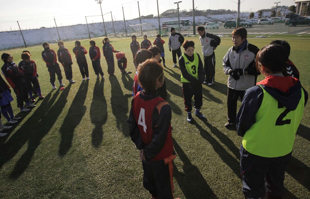 開始時のノジマステラの選手の足下からテスト生へと伸びる影がプレッシャーを表し、終了時の黒い部分の多さが心の重さを表しています。プロの技です。これだけ書いていたら、きっと高野カメラマンは次回、僕に何かくださると思います。お願いします。
