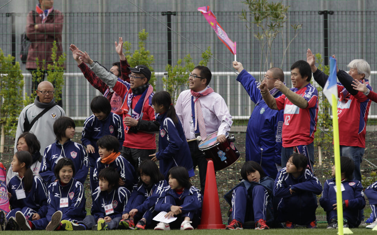 両チームの応援団。エール交換から交流まで、本当に女子サッカーを好きなのだというのが伝わってきます。こちらもナイス・プレーでした。