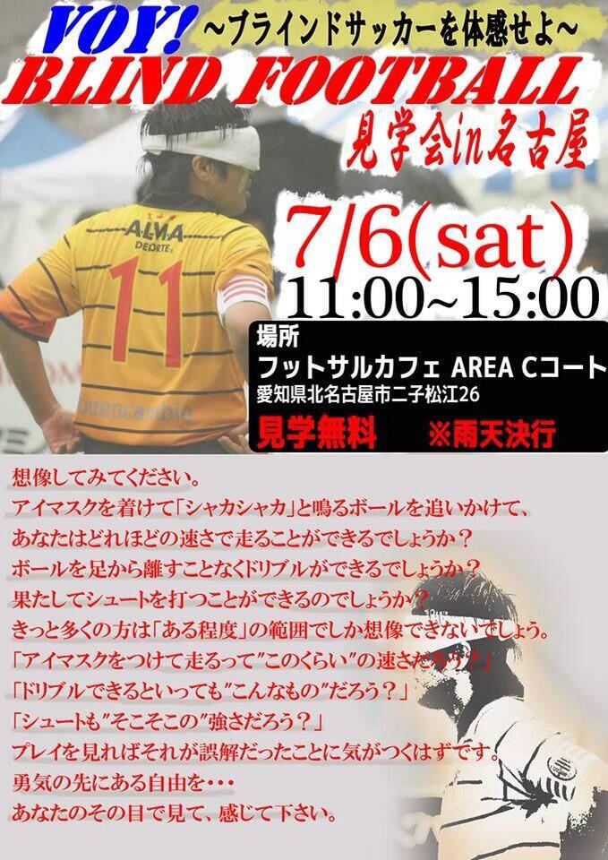 7月6日(土)11~15時 場所はフットサルカフェ・エリア(愛知県北名古屋市二子松江26)。