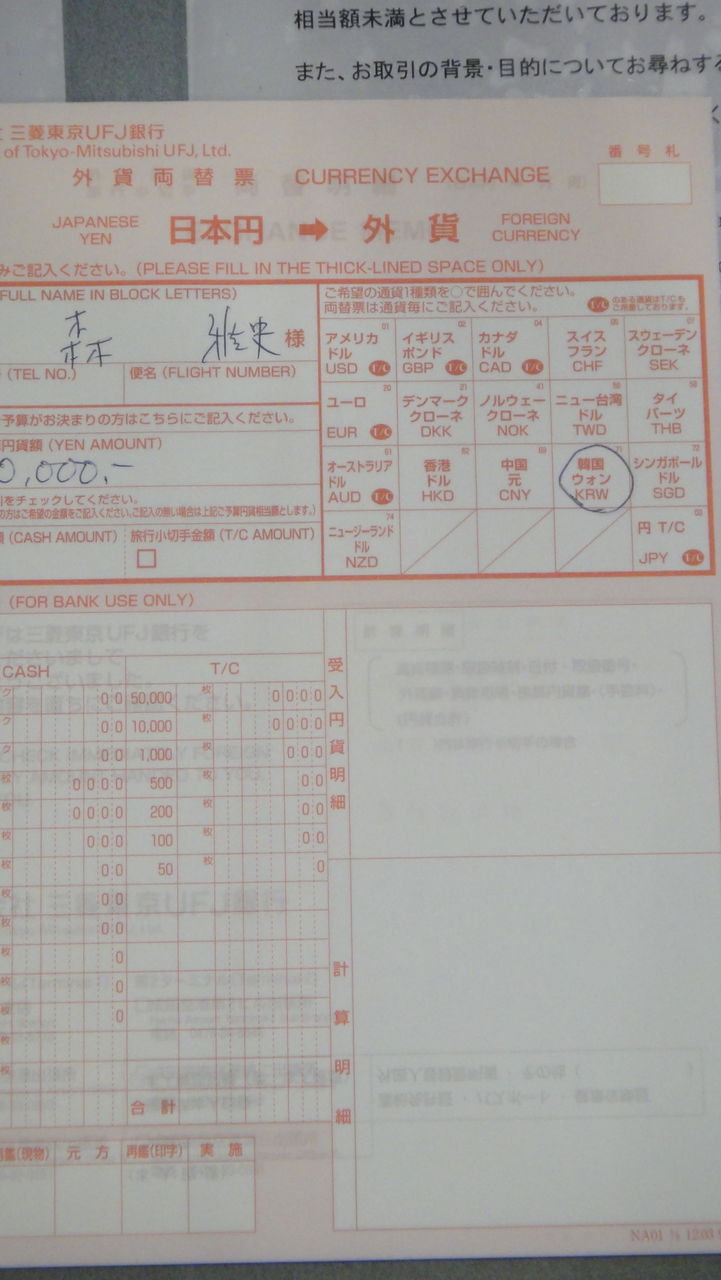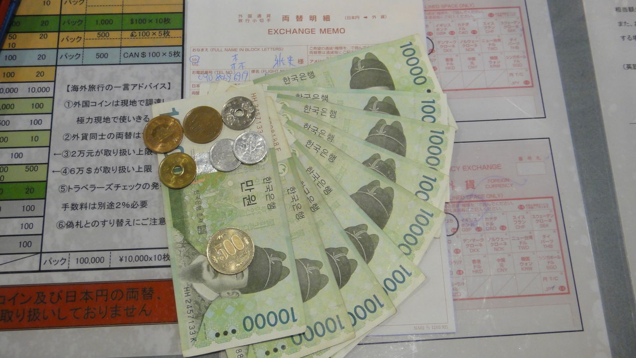 さて、受付を終わったら、今回は仁川空港に着くと地下鉄ですぐにウロウロするつもりなので、両替しておきます。