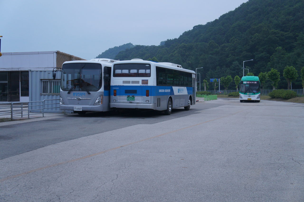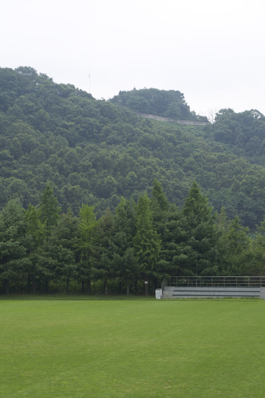 練習場の向こうには朝鮮民主主義人民共和国との軍事境界線に臨む展望台があります。そんな政治的な場所で韓国の選手はトレーニングを積むのだと思うと、ちょっと複雑です。