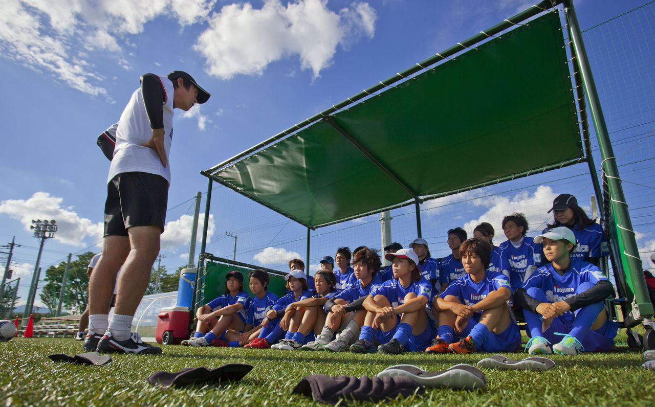 この写真のポイントは、監督から伸びる影。その影が端の選手までちゃんとカバーしているということで、監督の話の影響力が伺える構図になっています。