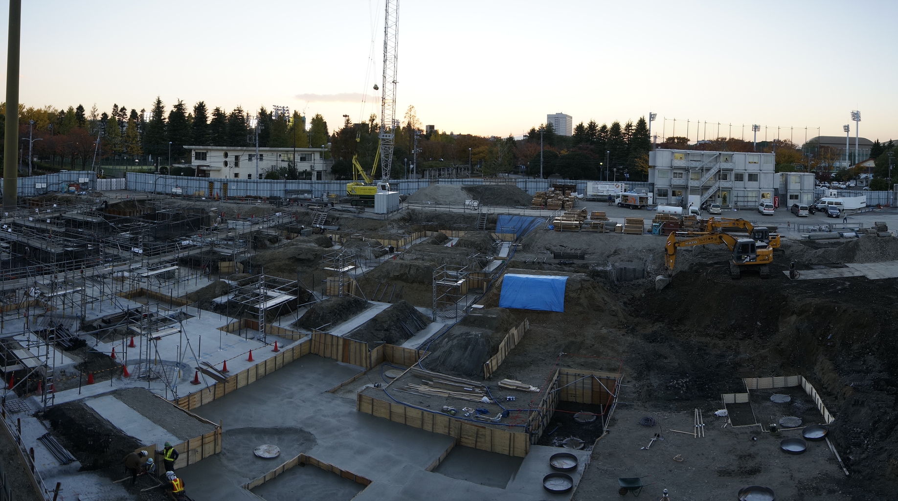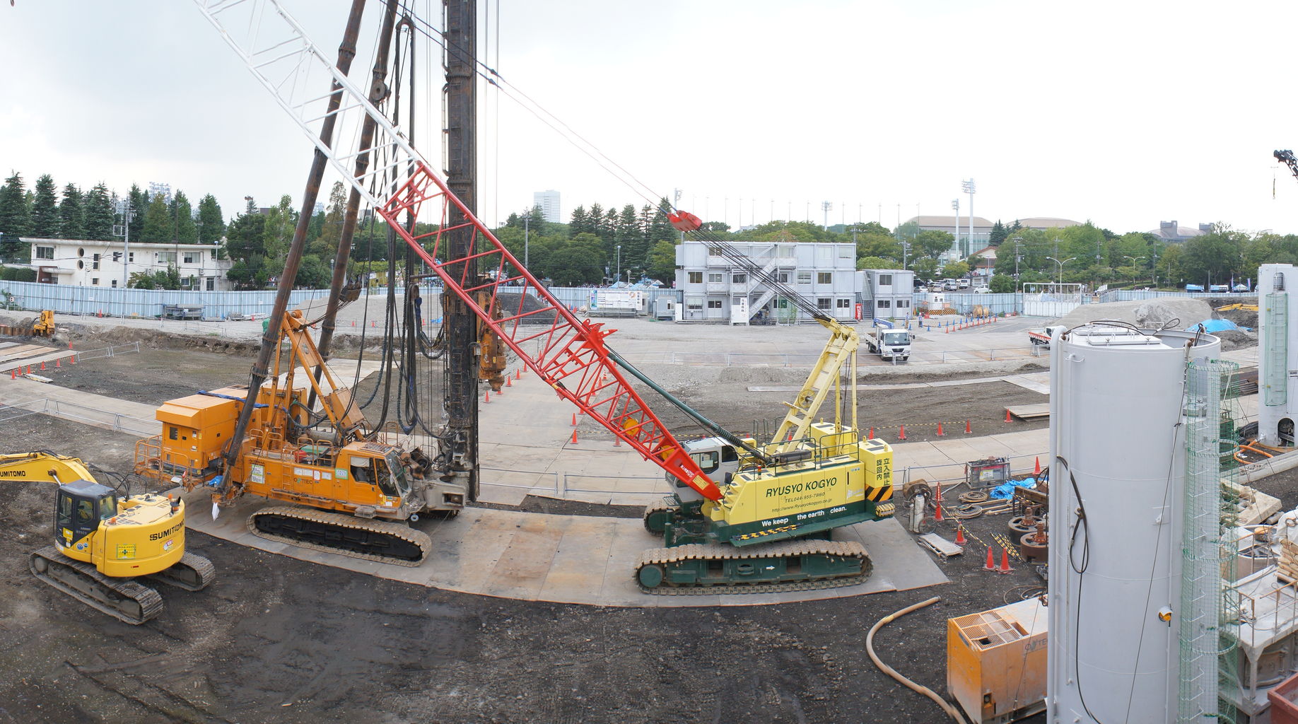 巨大な構造物を支える基礎ができあがりつつあります。来年の開幕の時はどこまでできているのか楽しみです。