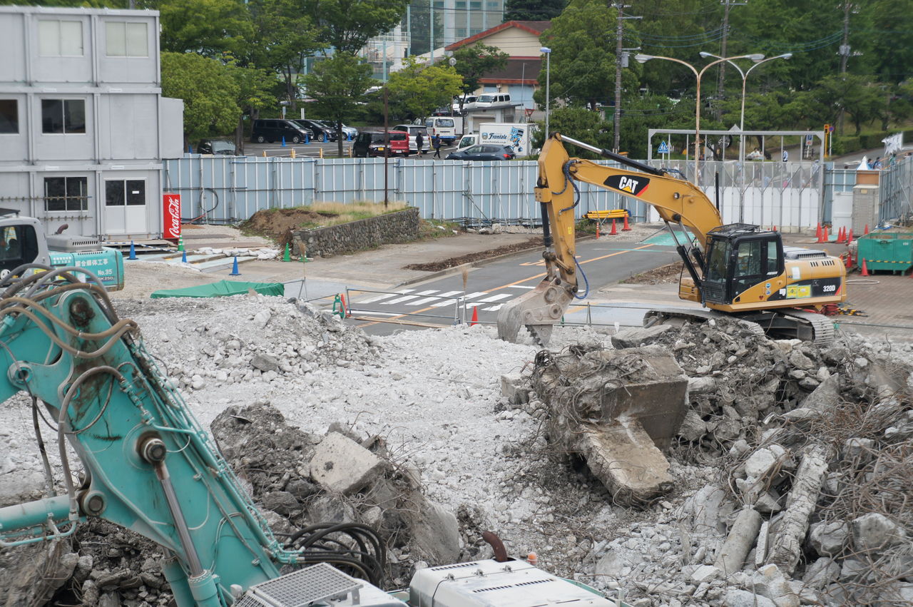 もう影も形もありません。崩れ落ちるところを見たら悲しかったでしょうから、一気になくなっていたのは良かったかも。まだ基礎のコンクリートは掘り出されかかっていて残っていました。
