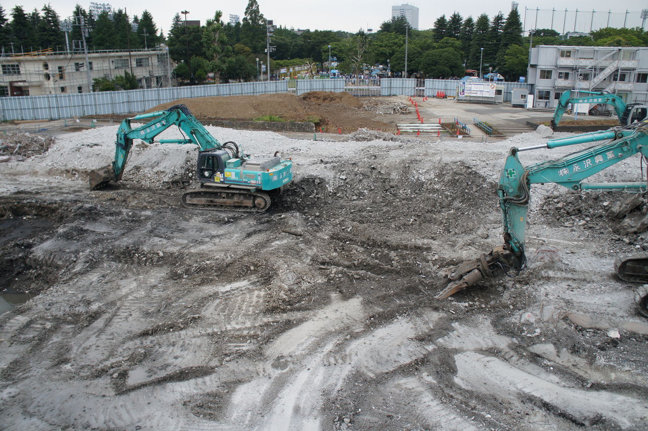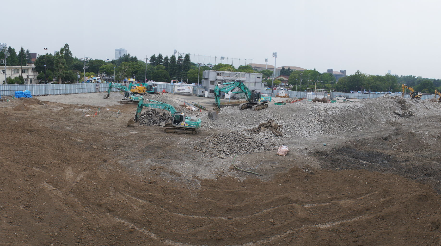 まず5月15日。まだメインスタンドはありました。ケーブルが取り除かれ、椅子がはがされ、ずいぶん寂しくなりましたが、まだ形は残っています。