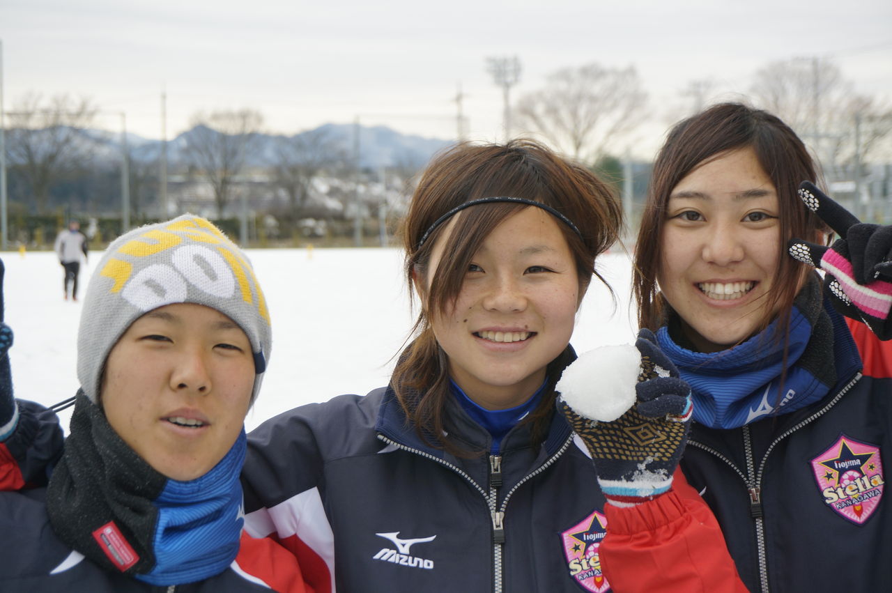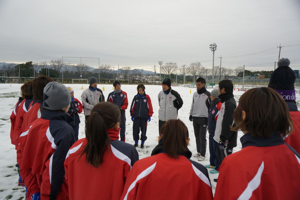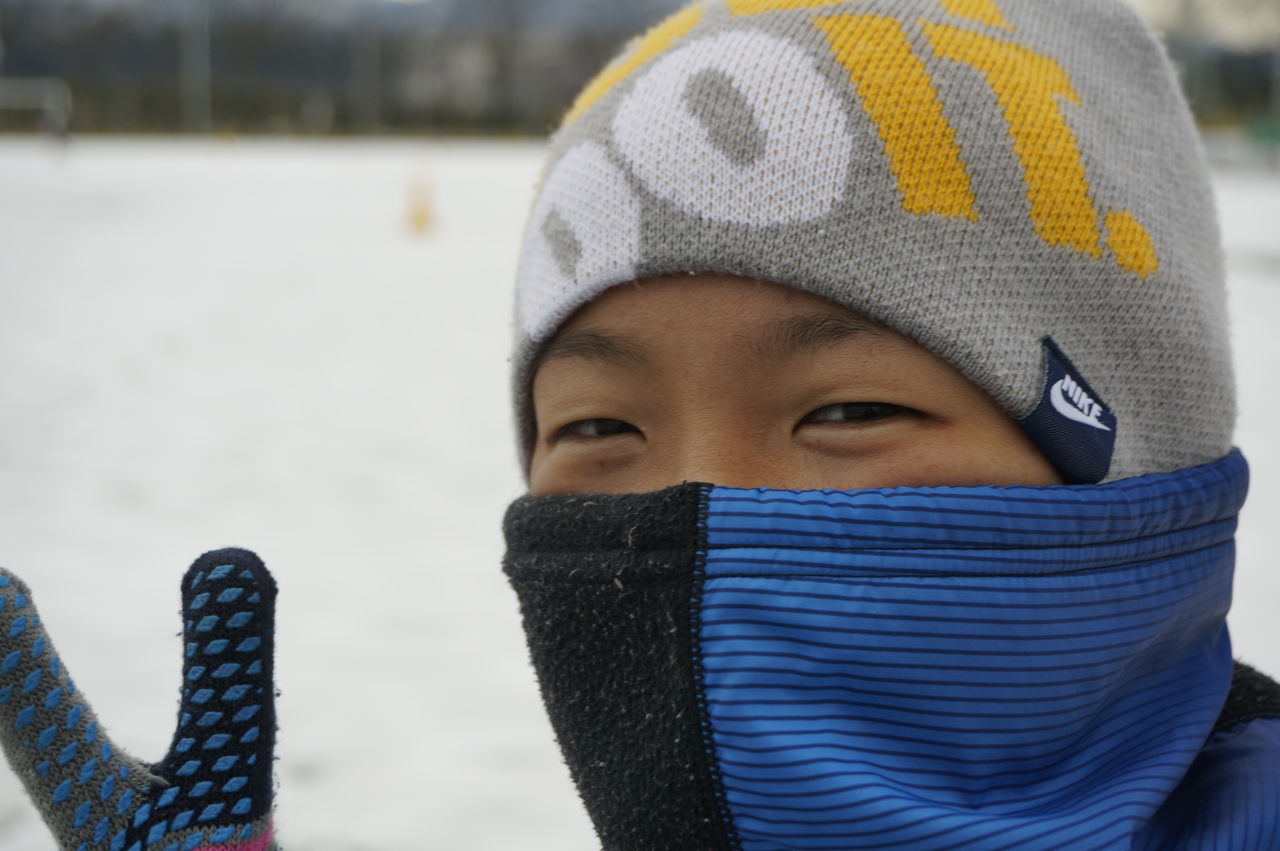 これでもコーチたちが雪かきした後です。そんな中で菅野監督得意のランニング!! みんなで走って雪を溶かしてしまおうという無茶な試みでした。