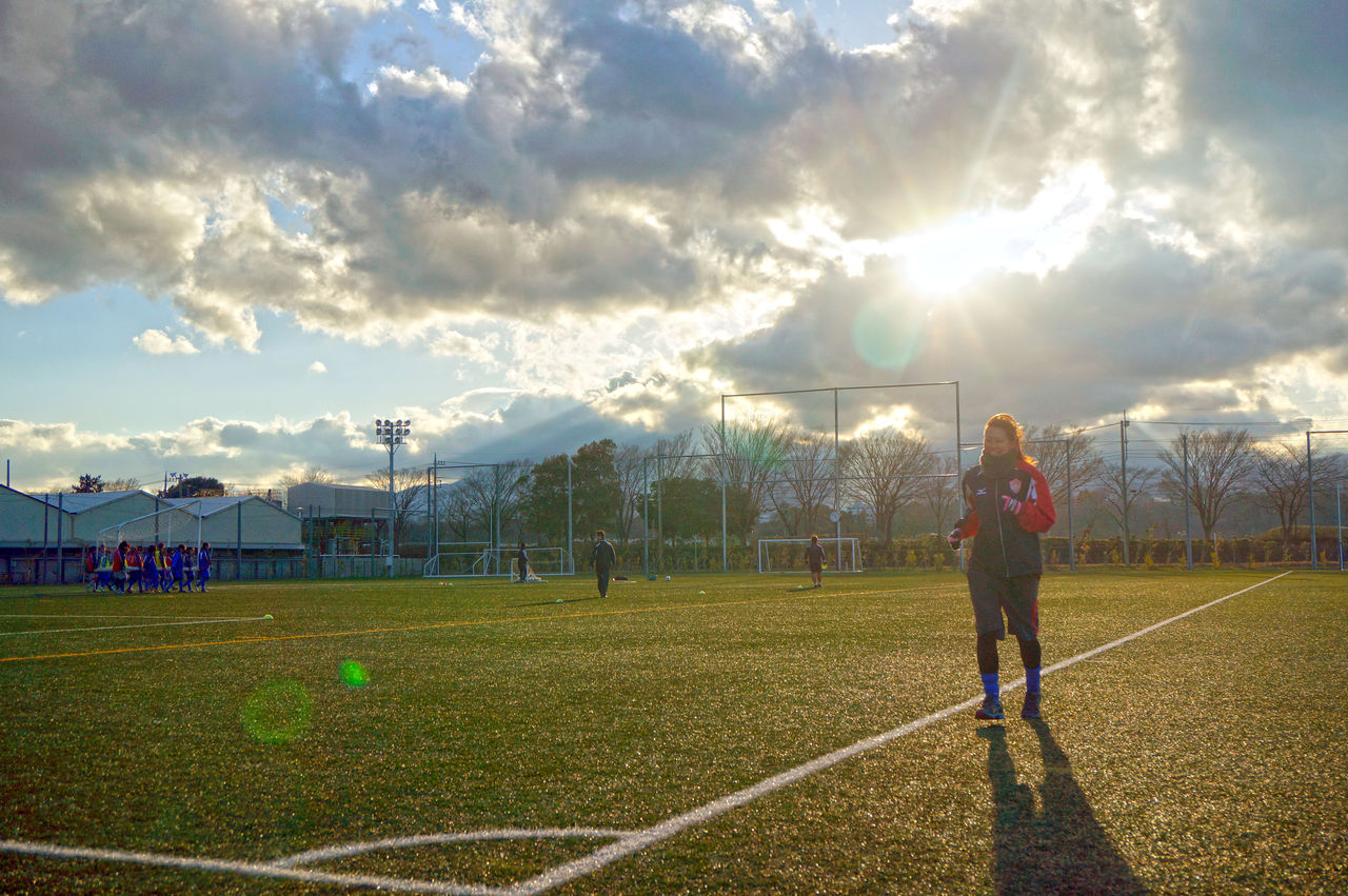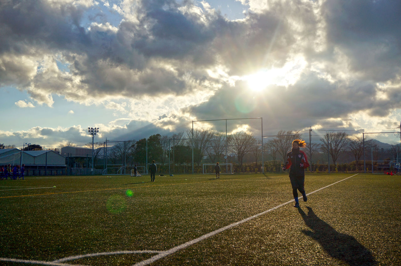 おお、空が明るい。古市選手の足取りは軽く、しばらくするとジョグを始めます。クラブハウス側に戻ってカメラを構えていると……。