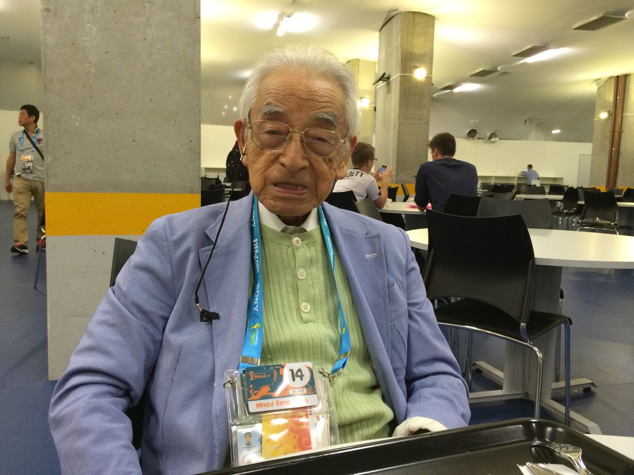 メディアセンターにいらっしゃいました。89歳、今回の取材陣でも最高齢かもしれません。