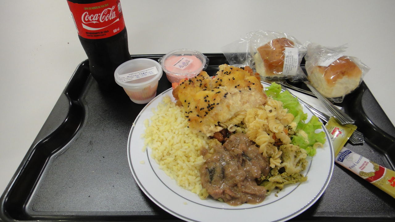 これが今回のFIFAメシ、38レアル(約1900円)。 あほかー、こんな値段出せば外苑前のリストランテ・カリオカでもっと食べられるわ~!!