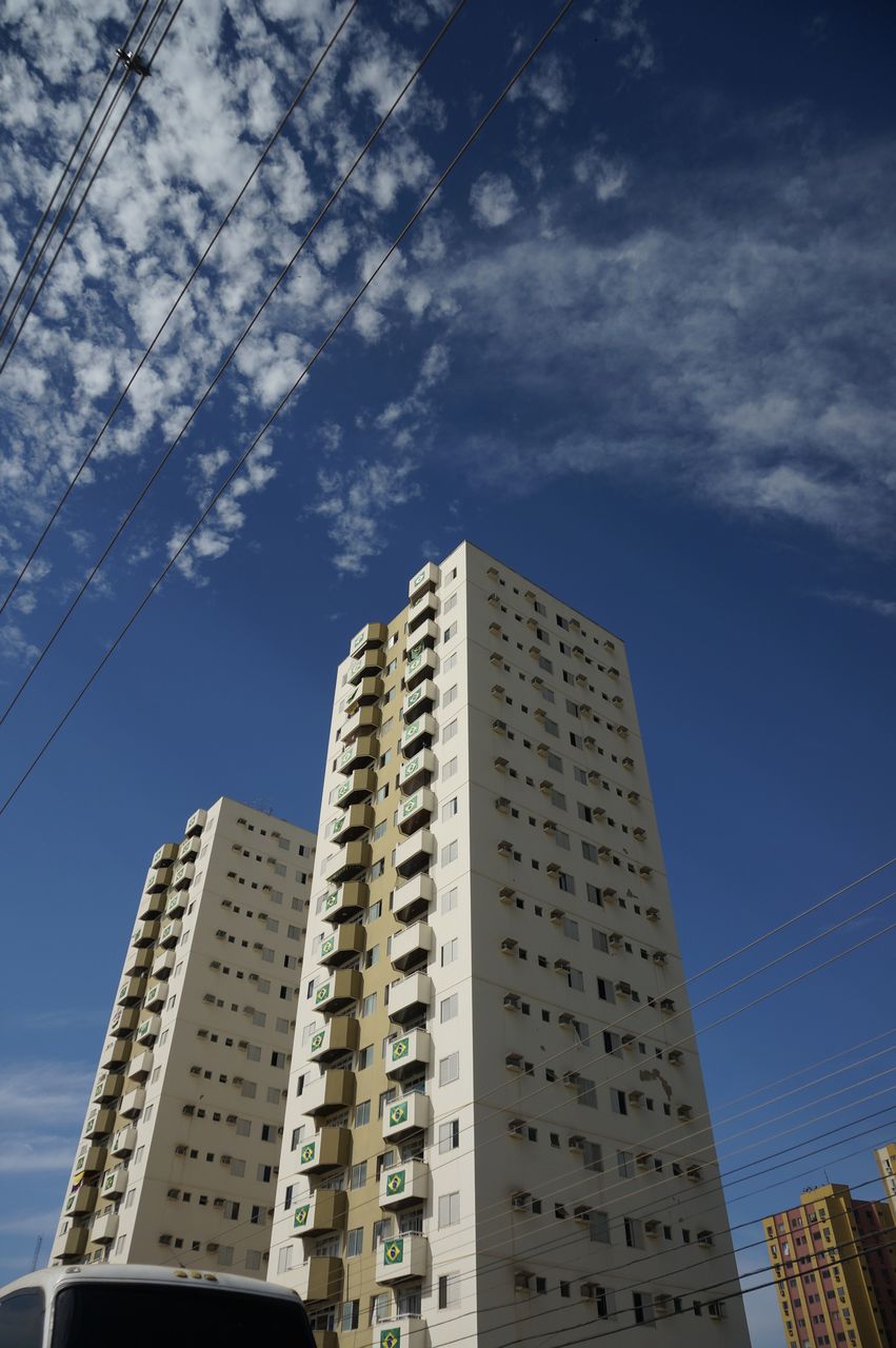 スタジアムの近くのマンションも、たくさんの窓からブラジル国旗が垂れ下がり、ムードを盛り上げています。