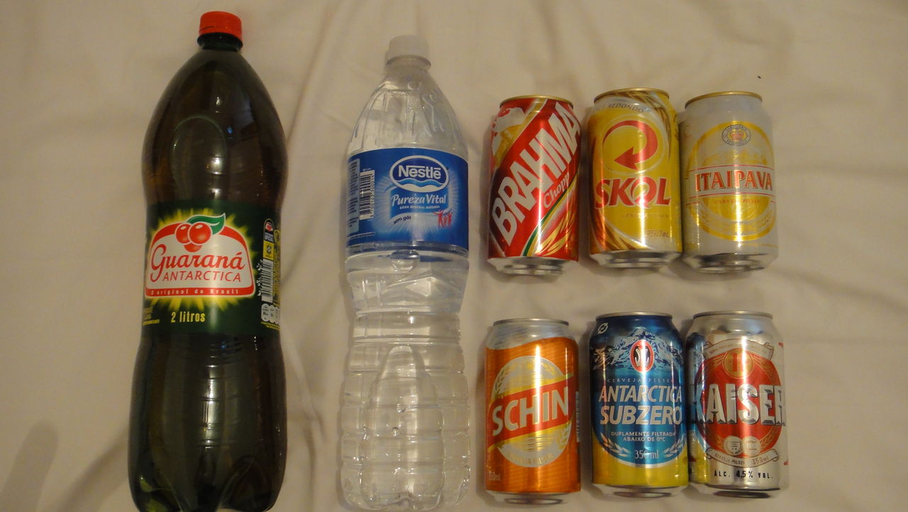 日本だと高いガラナの2リットルが4.69レアル(約235円)、水1.5リットルが1.69レアル(約85円)。ビールはだいたい1.45~1.99レアル(約75円~100円)。