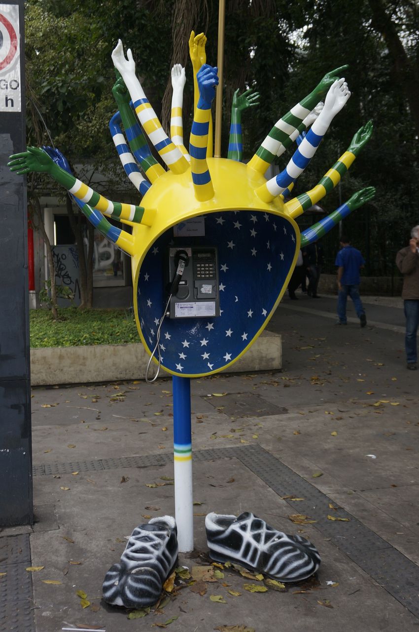 こちらの公衆電話はなかなか芸術的に飾り付けてあるのが多いのですが、これはことさら目を引きました。夜見たらちょっとビビりそう。