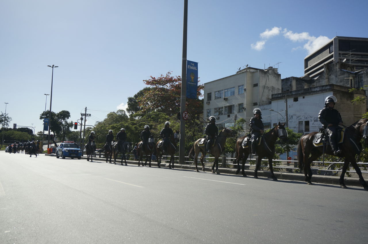 会場の周りは厳戒態勢。もとともマラカナンは警備体制が厳しいのですが、今日はさらにスケールアップしています。きっと各国の要人が来るのでしょう。