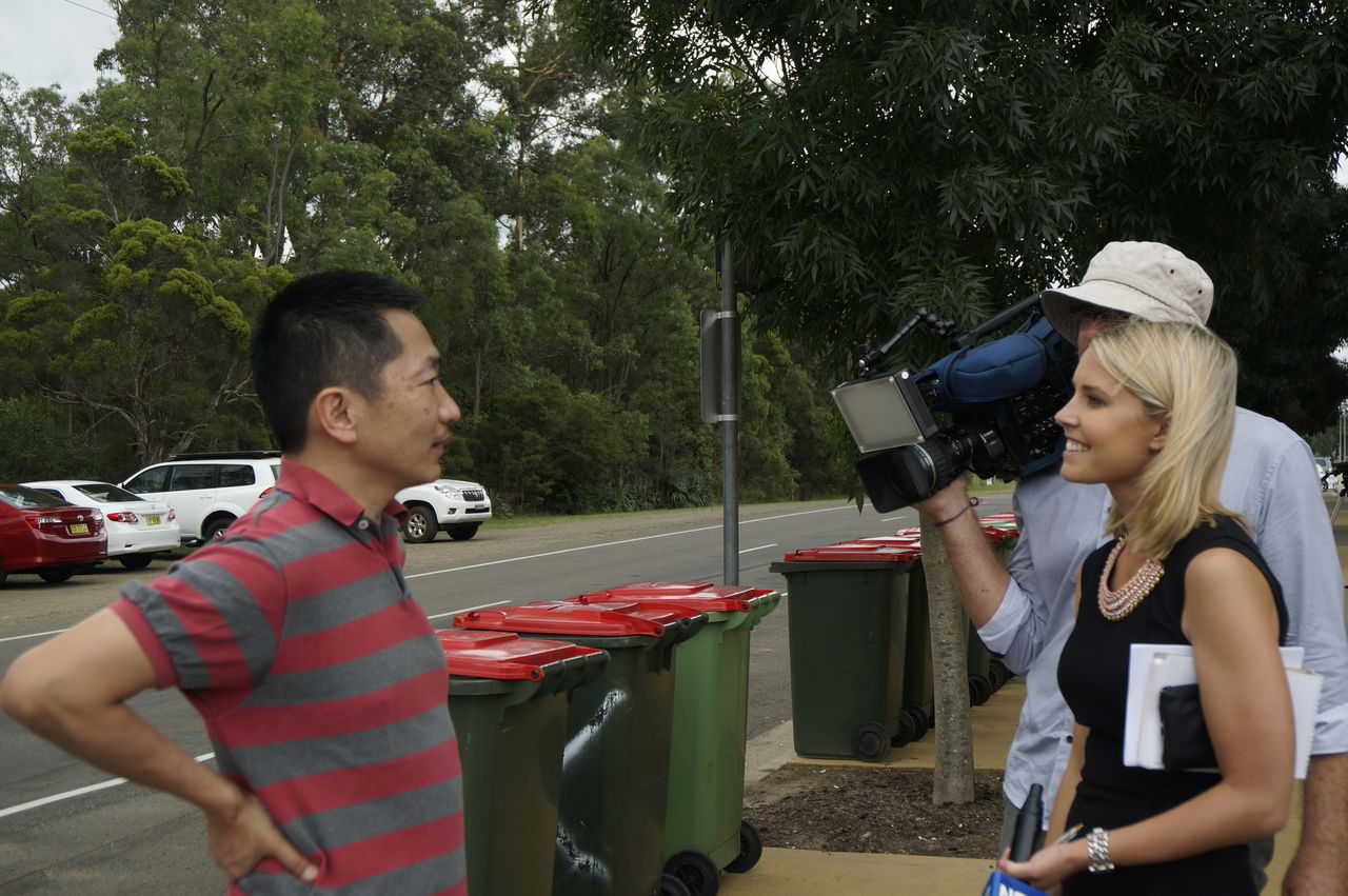 地元メディアからいきなりインタビューを受ける原田公樹さん。堂々と答えていらっしゃいましたが、女性レポーターの笑顔に顔がほころぶ場面も。