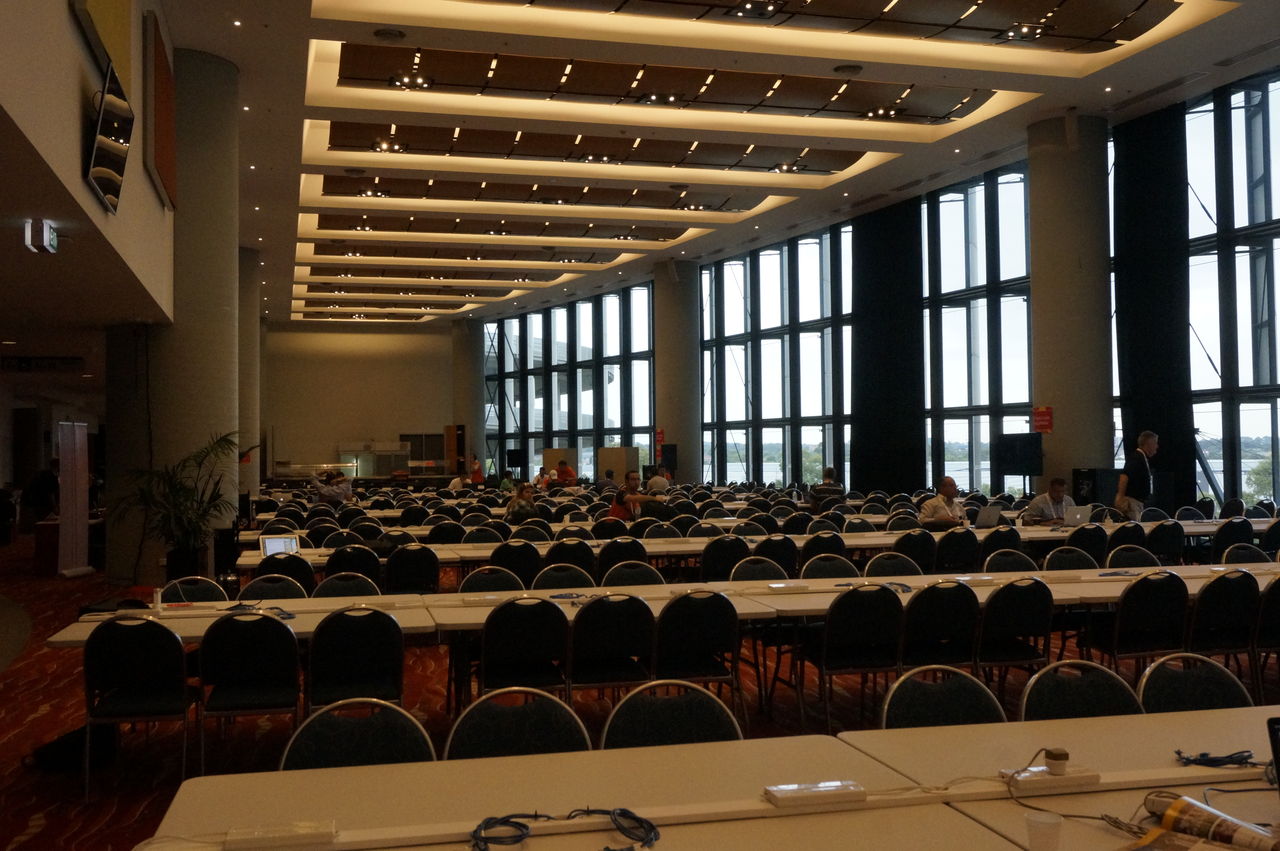 スタジアムの中の一角がメディアセンターになっていました。ワールドカップのときのように駐車場に仮説で建てられ、排気ガスが入ってくるなんてことはなさそうです。