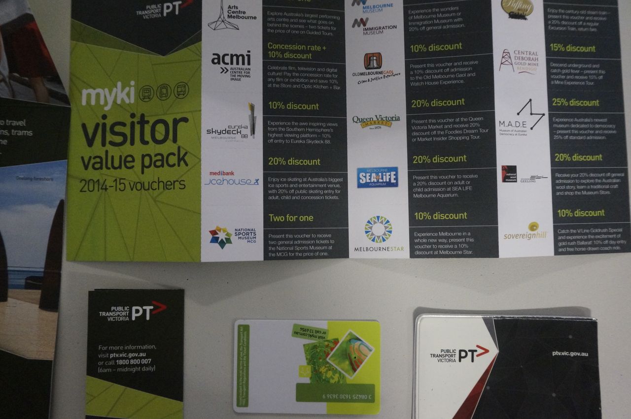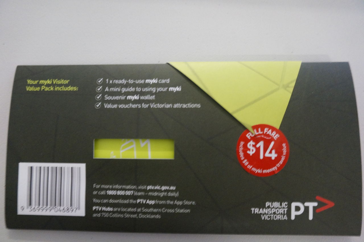 Myki (マイキー)という、スイカとかイコカと同じようなモノですね。それのスターターキット。カードが6AU$、8AU$がチャージ済み、ついでにカード入れがついて14$。安いけど高い。