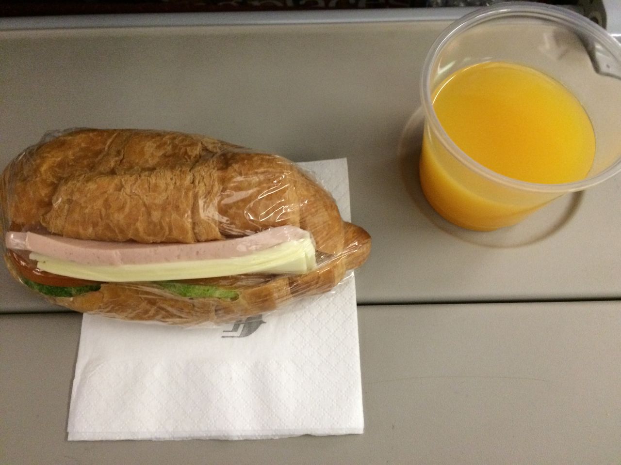 到着間際におにぎりが1個配られ、それが軽食だったようです。