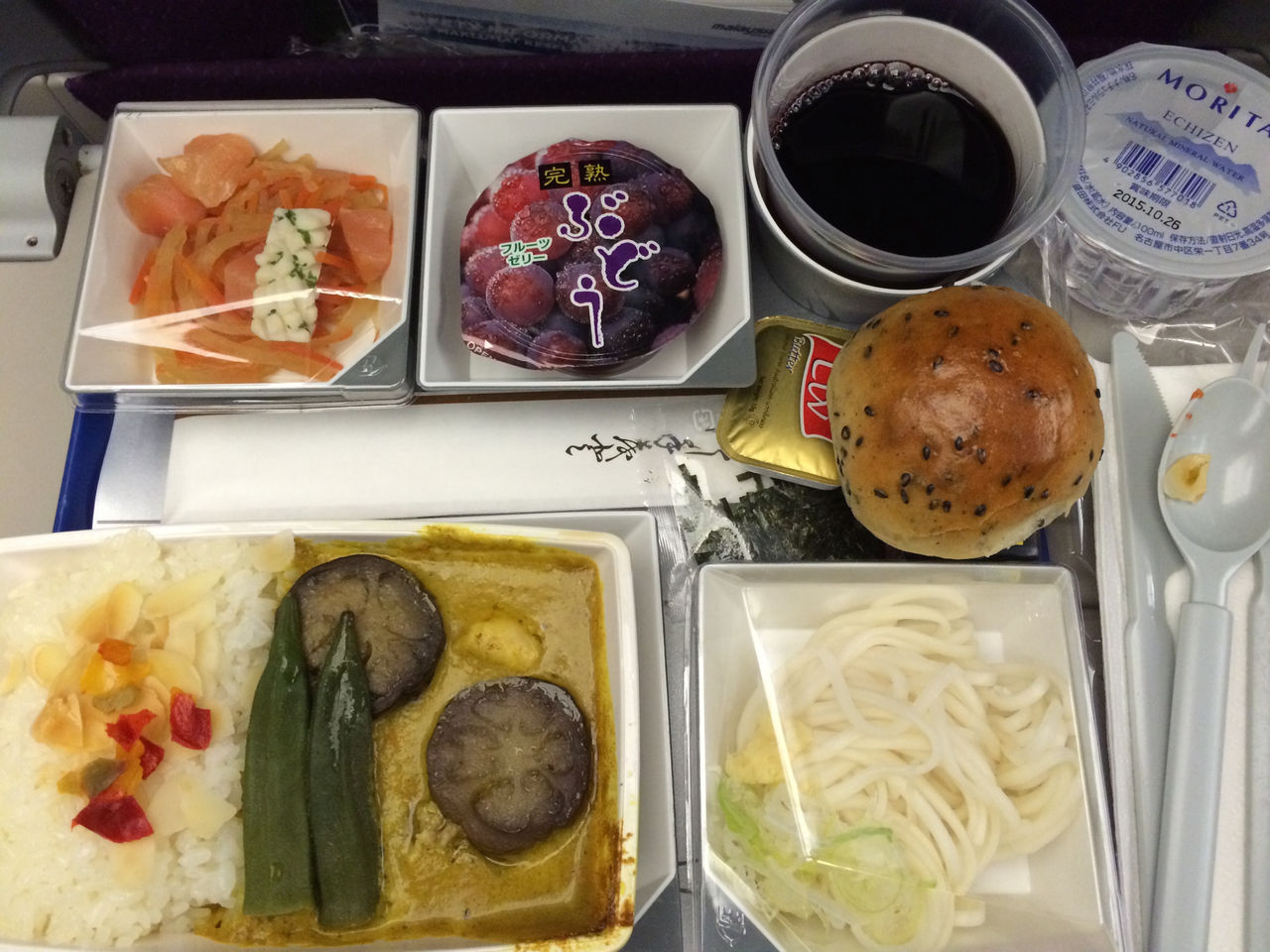 恒例の機内食オンパレードです。今回はマレーシア航空のみ。もちろんエコノミーです。