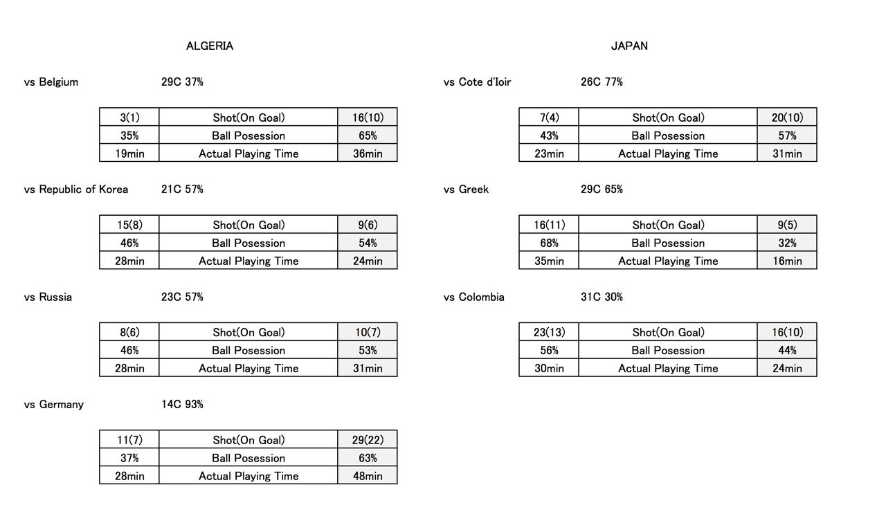 2014年ワールドカップのアルジェリアと日本を比べると、