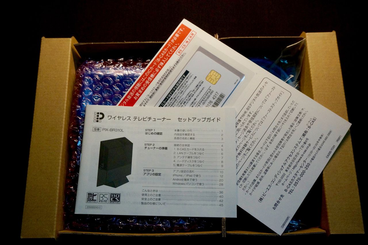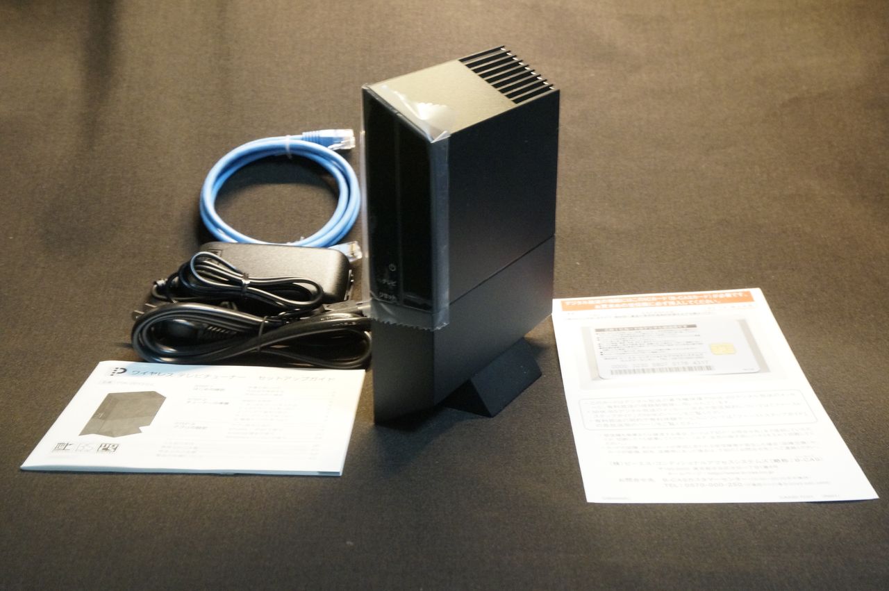 軽い。シンプル。小さい。LANケーブルは付いていますが、アンテナ線とつなぐ同軸ケーブルは付いていません。いや、ほら1万円ならもう少しズシッと……。