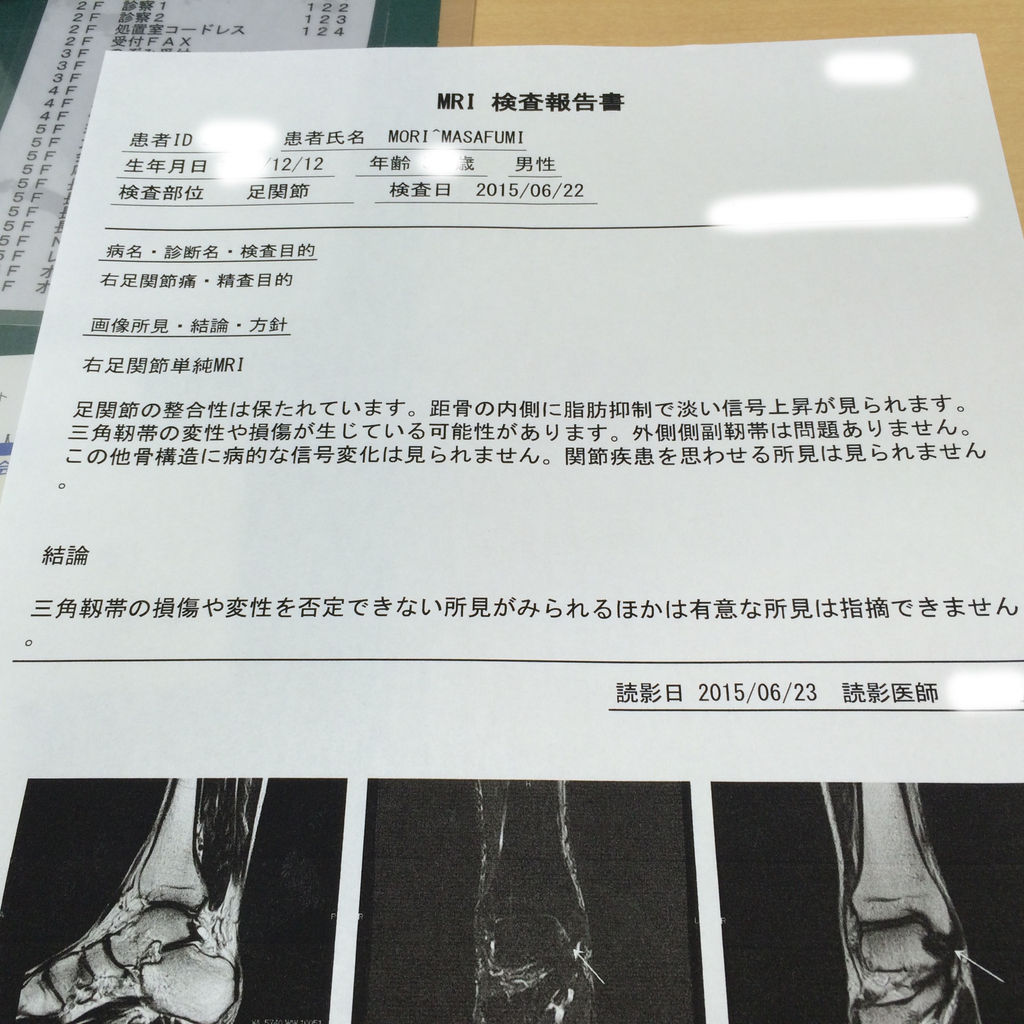 「結論 三角靱帯の損傷や変形を否定できない所見が見られるほかは有意な所見は指摘できません」