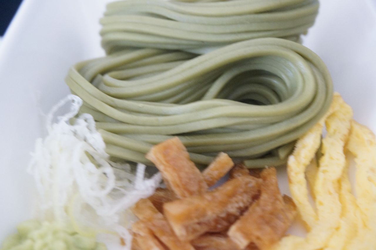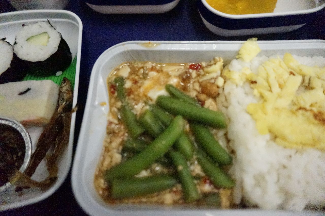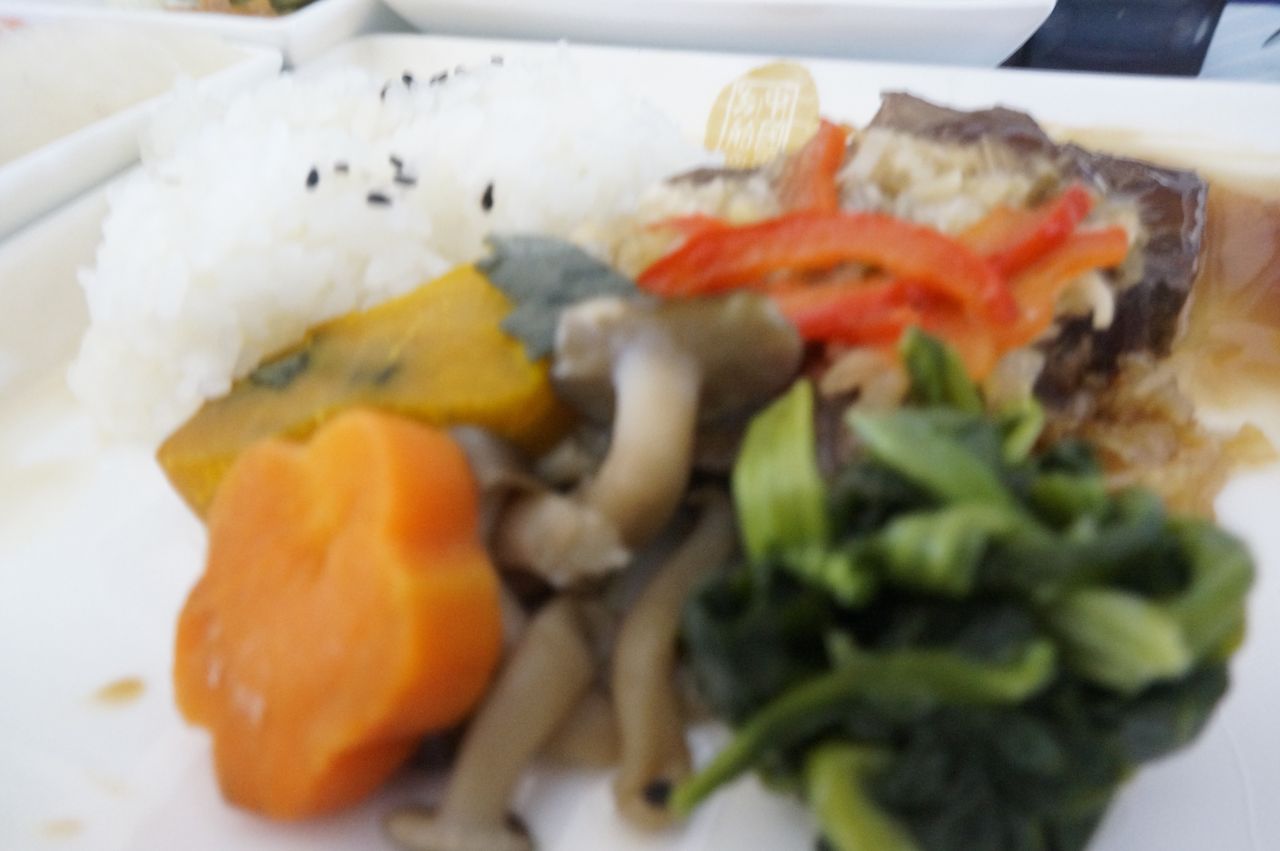 ビジネスクラスの食事に比べると、ちょっと色目が落ちます。