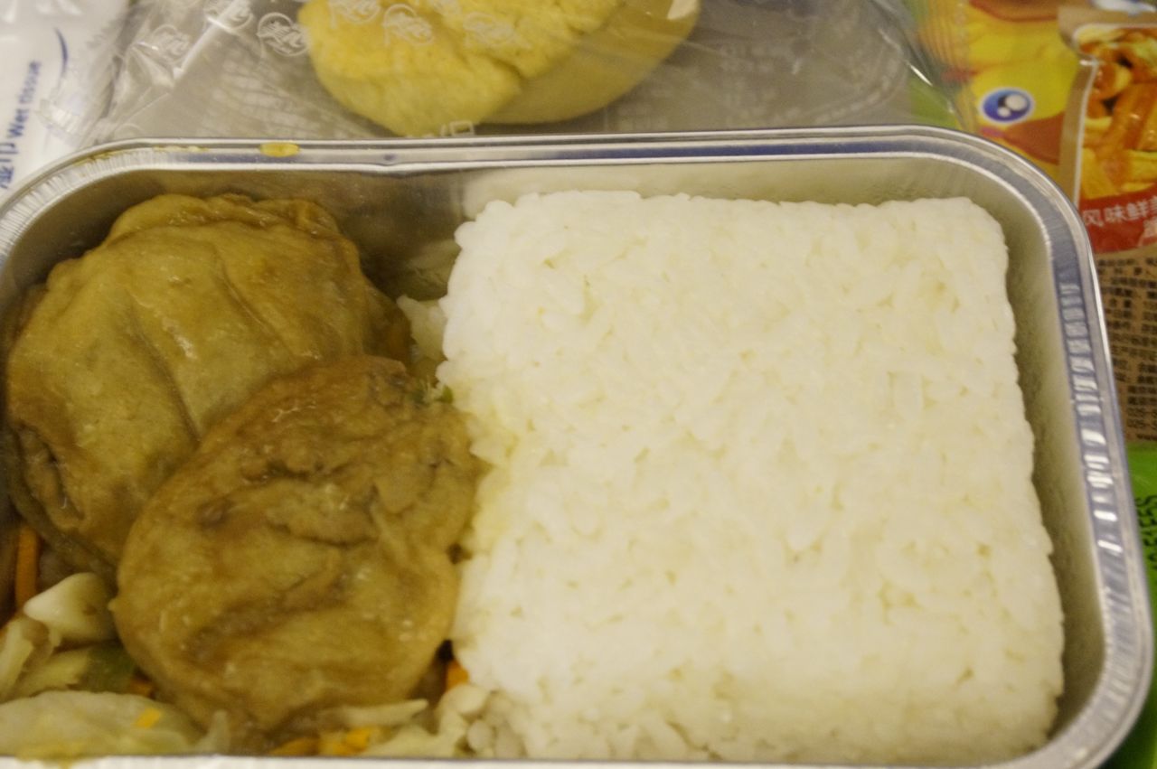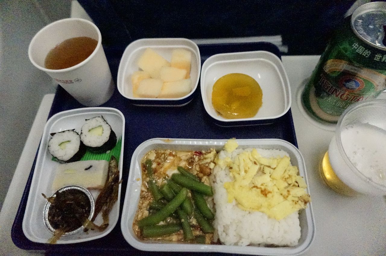 次に上海ー武漢です。出発が昼から夕方に変更されていたので、夕食が出ました。