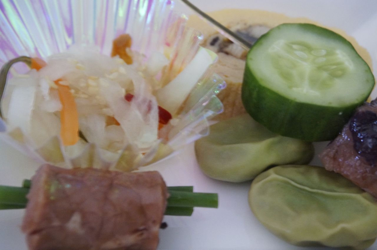 めったにないビジネスクラスなので、それぞれの料理を大きく写しておきました。舞い上がってるなぁ。ちなみに、エコノミーの値段で取っていたらなぜかアップグレードされていました。ここまでは中国東方航空を愛していたなぁ(遠い目)。