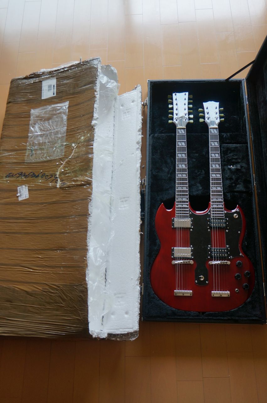 厳重に梱包されて、とうとうダブルネックギターがやってきました!