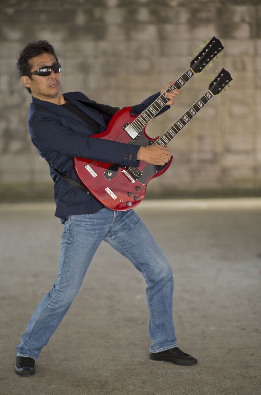 で、このダブルネックの写真を撮りにやって来てくれたのが、「ラスカル高野」こと高野宏治カメラマン。